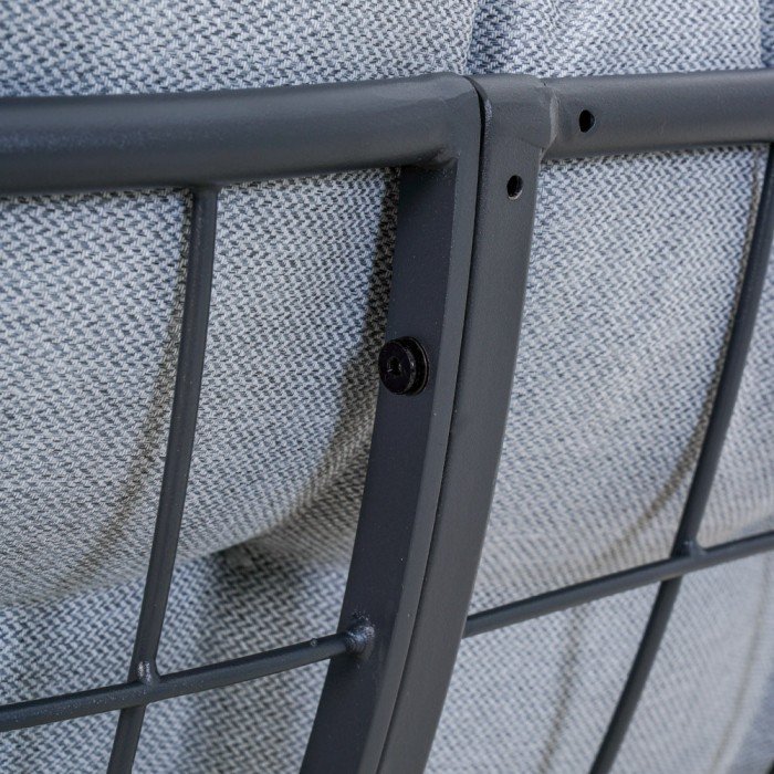 Sitzfläche und Rückenlehne sind mit dick gepolsterten Polyesterkissen ausgestattet, die sowohl weich als auch abriebfest sind. Polyester ist bekannt für seine Langlebigkeit und einfache Pflege – Flecken können einfach mit einem feuchten Tuch abgewischt werden, und die Kissen können bei Bedarf abgenommen und gewaschen werden. Das Material trocknet schnell und behält seine Farbe auch nach längerer Sonneneinstrahlung. Die ergonomische Form des Sitzes und die leicht geneigte Rückenlehne ermöglichen eine natürliche Körperhaltung, was den Sitzkomfort erhöht.