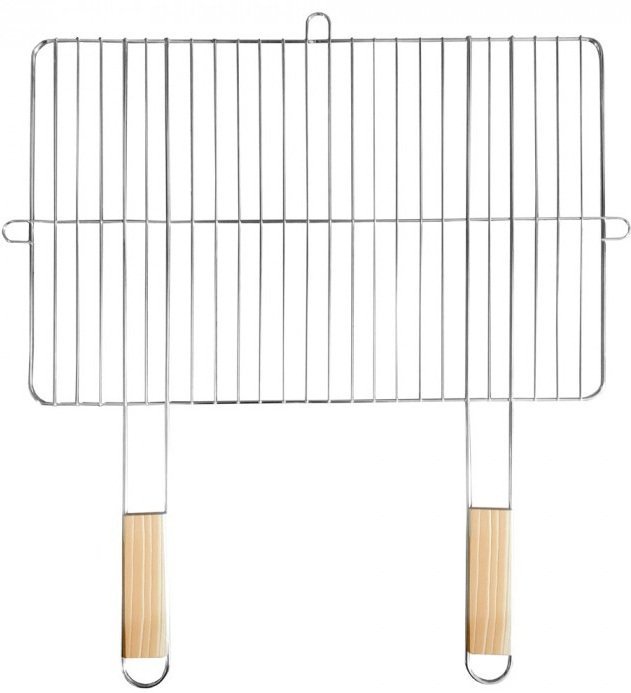 Der Rost ist aus Edelstahl gefertigt, was eine lange Lebensdauer und Rostbeständigkeit gewährleistet, selbst bei längerem Einsatz im Freien. Darüber hinaus verfügt er über zwei Holzgriffe, die ein sicheres und bequemes Handling während des Grillens ermöglichen, da sie sich nicht erhitzen – ein entscheidender Faktor für Sicherheit und Benutzerfreundlichkeit.