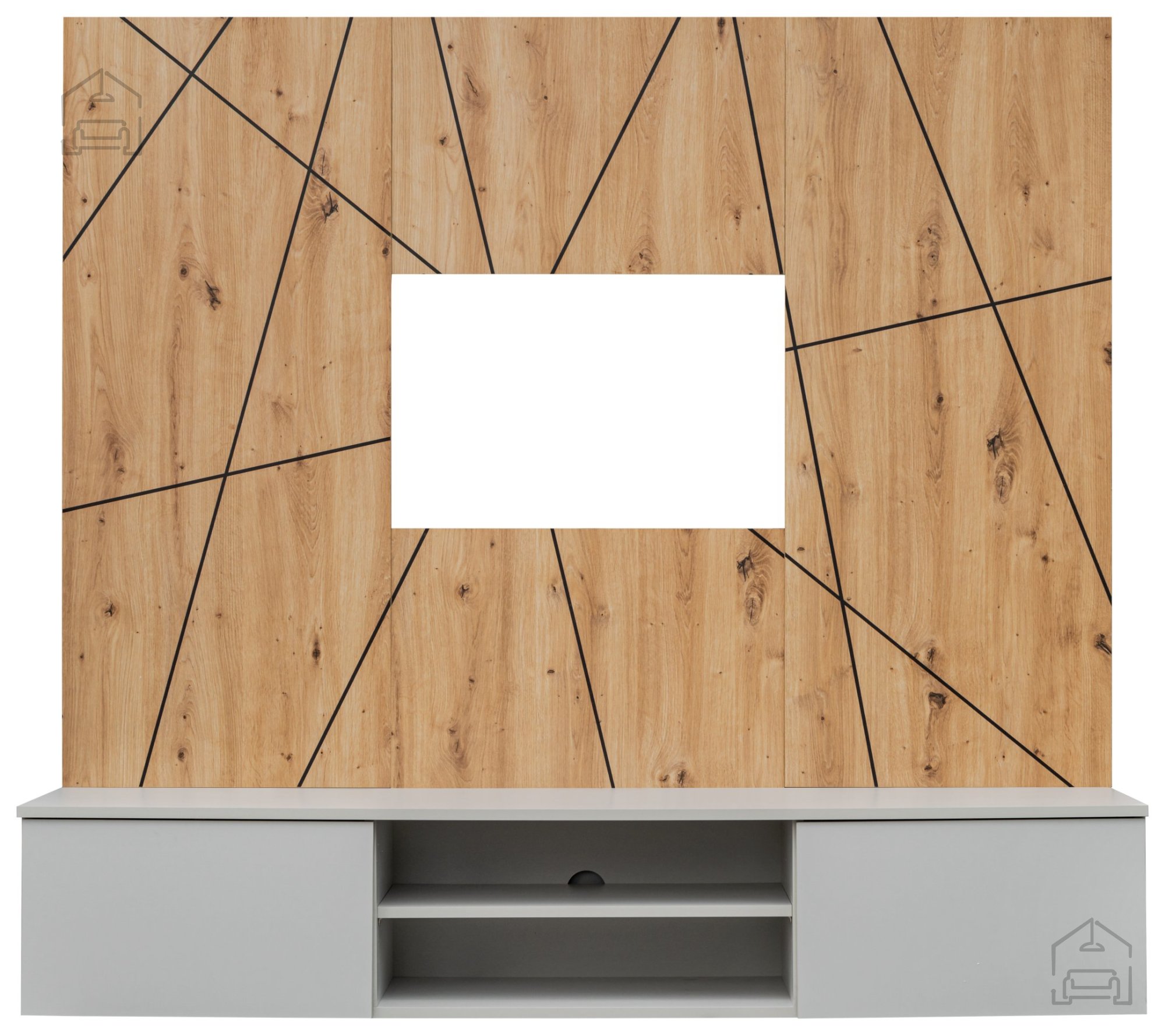 Wir präsentieren Ihnen das Wohn-TV-Regal Xari G2, das modernes Design und Praktikabilität vereint und aus hochwertiger Spanplatte gefertigt ist. Mit den Maßen 200x35x148 cm fügt sich dieses Regal elegant in jedes Wohnzimmer ein, unabhängig von seiner Größe. Seine Farbgebung, eine Kombination aus Perlgrau und Artisan-Eiche, bringt einen Hauch natürlicher Eleganz, der sich hervorragend mit verschiedenen Einrichtungsstilen kombinieren lässt.