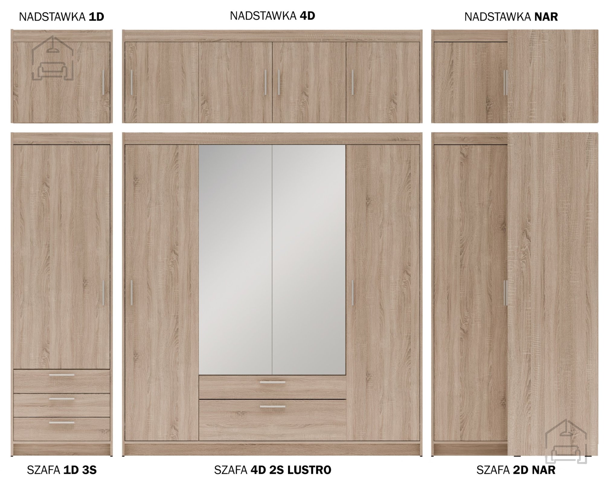 Die Farbe Eiche Sonoma ist ein Synonym für natürliche Schönheit und Wärme. Der Schrank Elena bringt in jeden Raum ein Gefühl von Komfort und Eleganz, während er gleichzeitig ein modernes Aussehen beibehält.