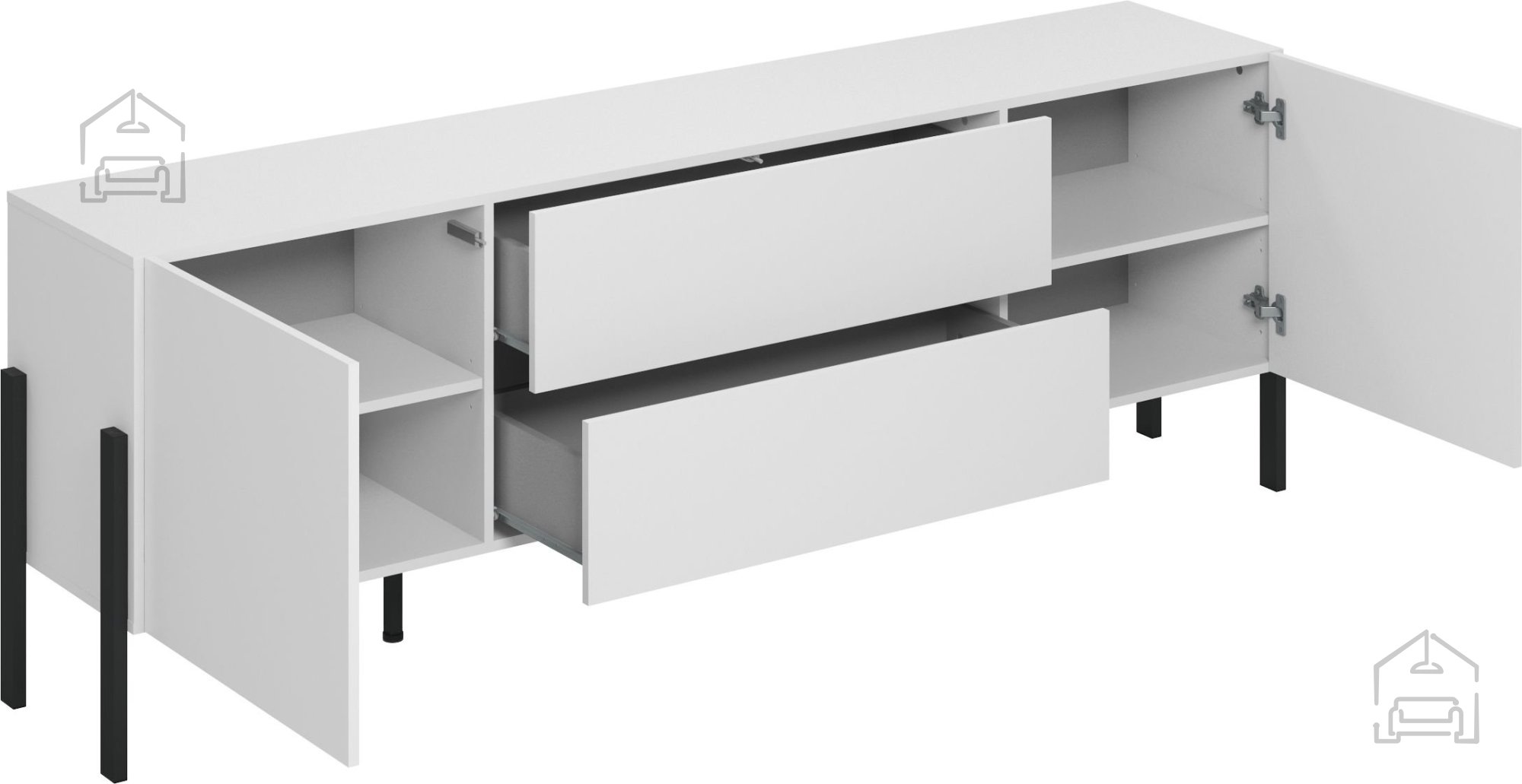 Maße und Design: Mit ihren Maßen von 204x40x70 cm bietet die TV-Kommode Jukon reichlich Platz für Ihren Fernseher und andere elektronische Geräte. Ihr großzügiges Design ermöglicht eine elegante Integration in jeden Raum, unabhängig von dessen Größe.