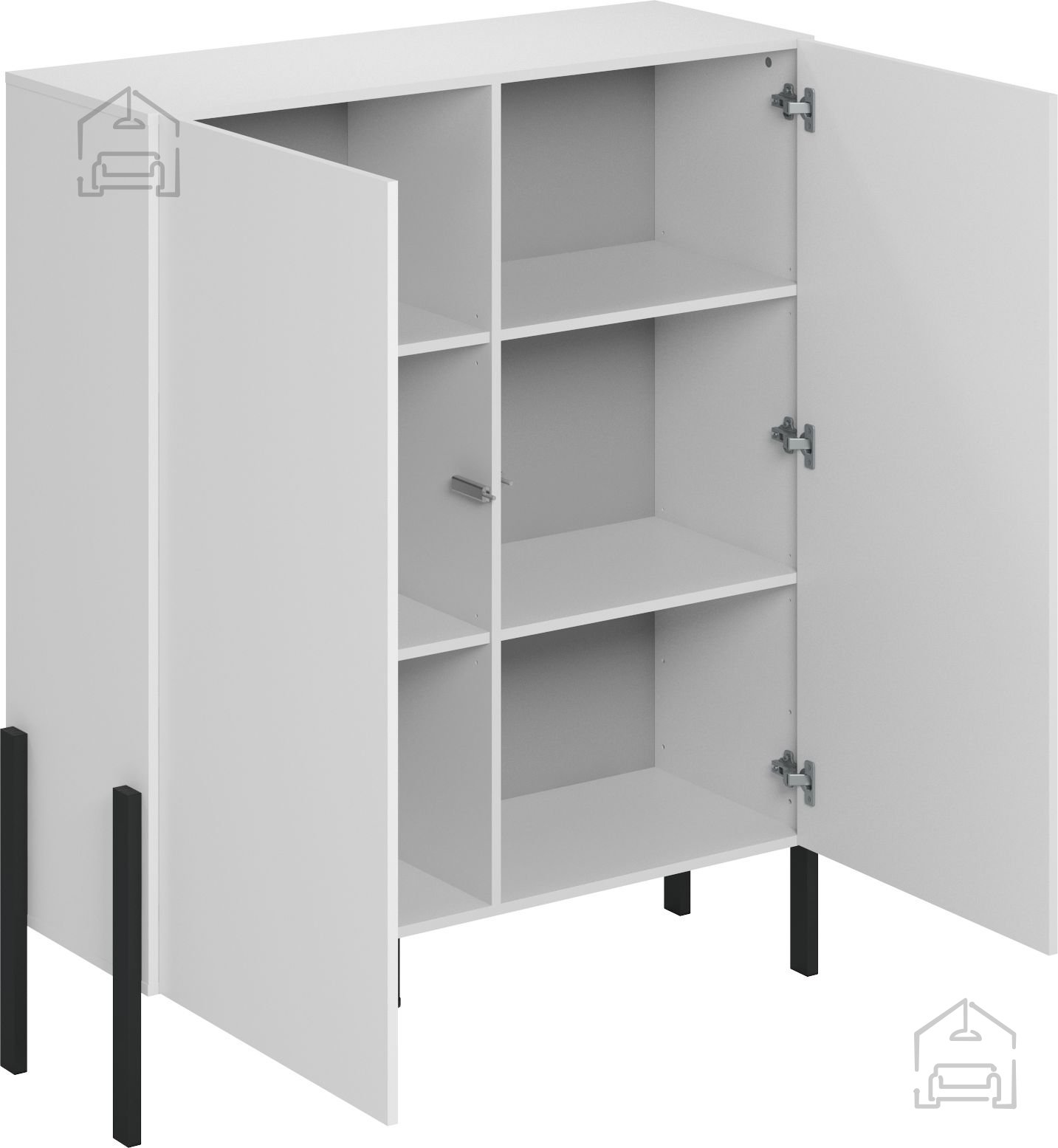 1. Modernes Design und Ästhetik: Die Kommode Jukon 2D wurde mit Blick auf aktuelle Trends im Interior Design entworfen. Ihre matte weiße Farbe verleiht ein Gefühl von Frische und Geräumigkeit – ideal für kleinere Räume, die optisch vergrößert werden sollen.