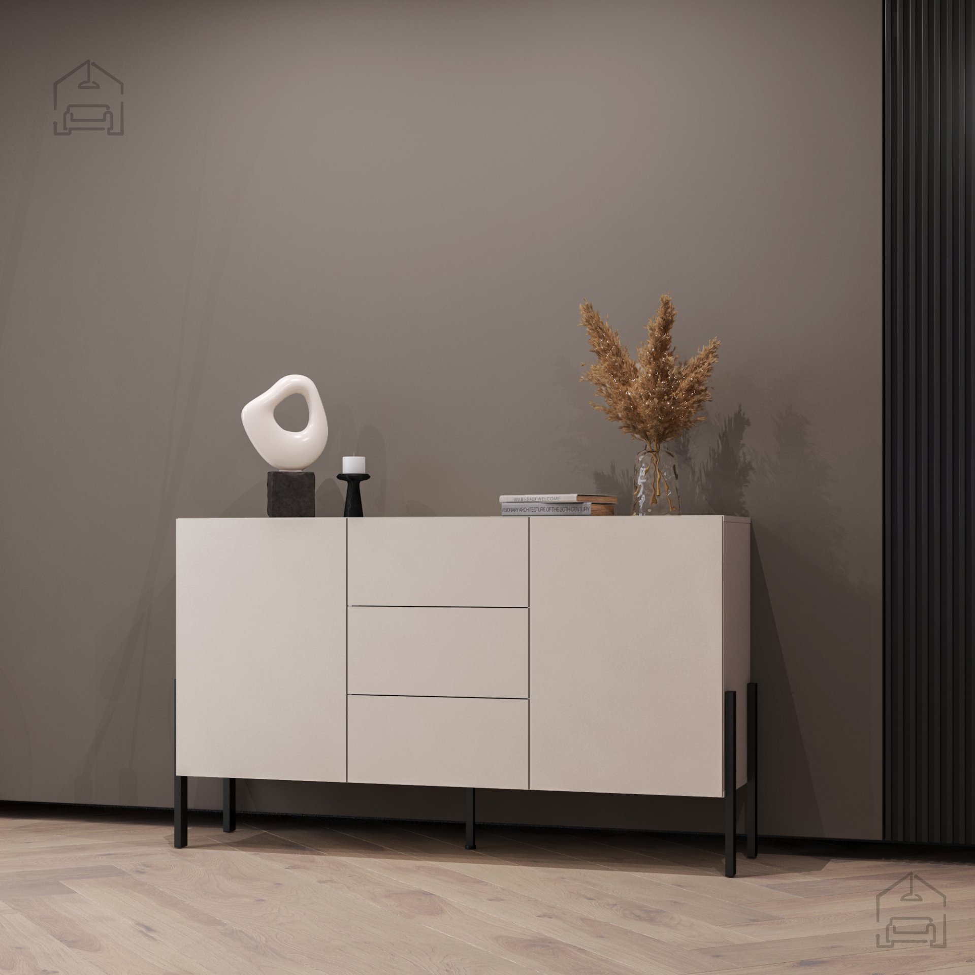 Mit drei Schubladen und zwei Schränken bietet die Jukon Kommode großzügigen Stauraum, damit Ihr Zuhause ordentlich und aufgeräumt bleibt.