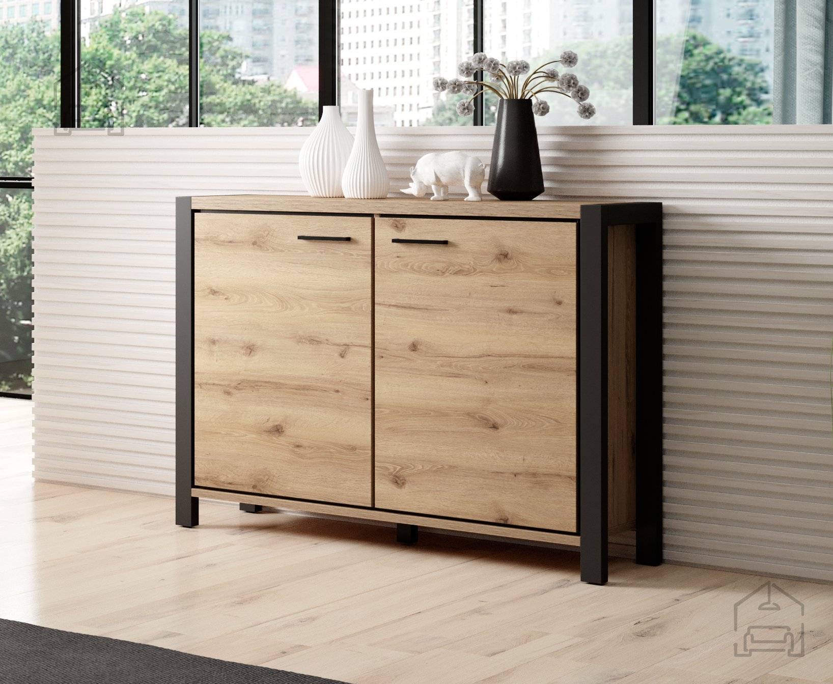 Die Farbpalette aus Taurus-Eiche und Schwarz ist ideal für ein modernes Zuhause, da sie natürliche Töne mit einem eleganten Touch verbindet und sich leicht mit anderen Möbeln kombinieren lässt.