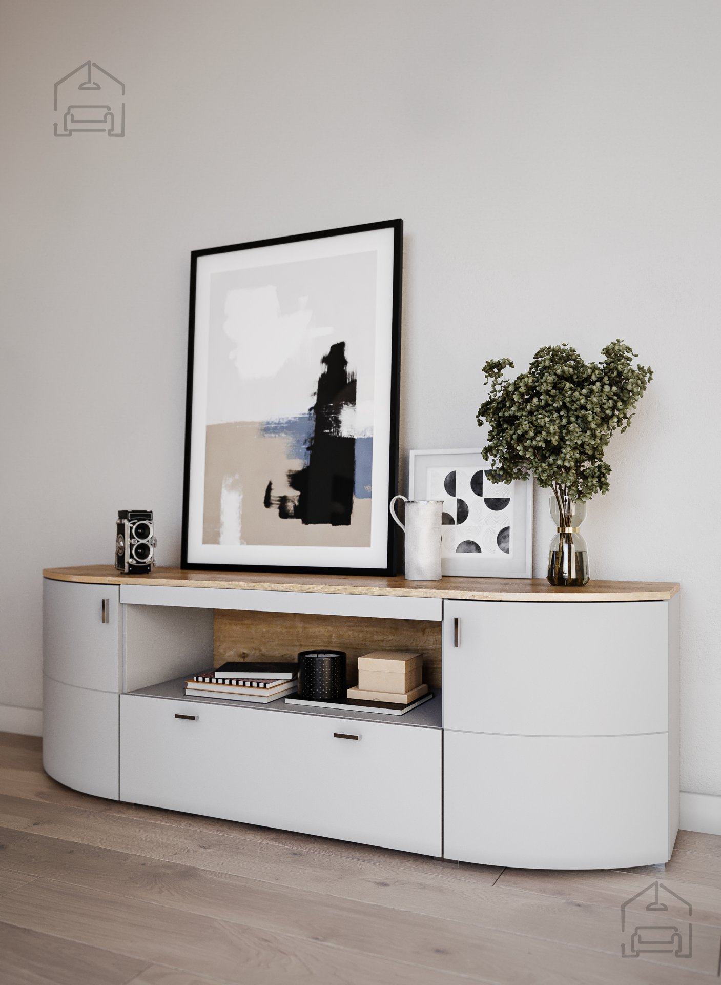 Funktionalität an erster Stelle: Das Wohnzimmer Sambuca ist mit Blick auf Praktikabilität entworfen. Geräumige Schränke und Regale bieten Ihnen viel Stauraum, während elegante Linien und minimalistisches Design sicherstellen, dass die Möbel den Raum nicht dominieren, sondern ihn harmonisch ergänzen.