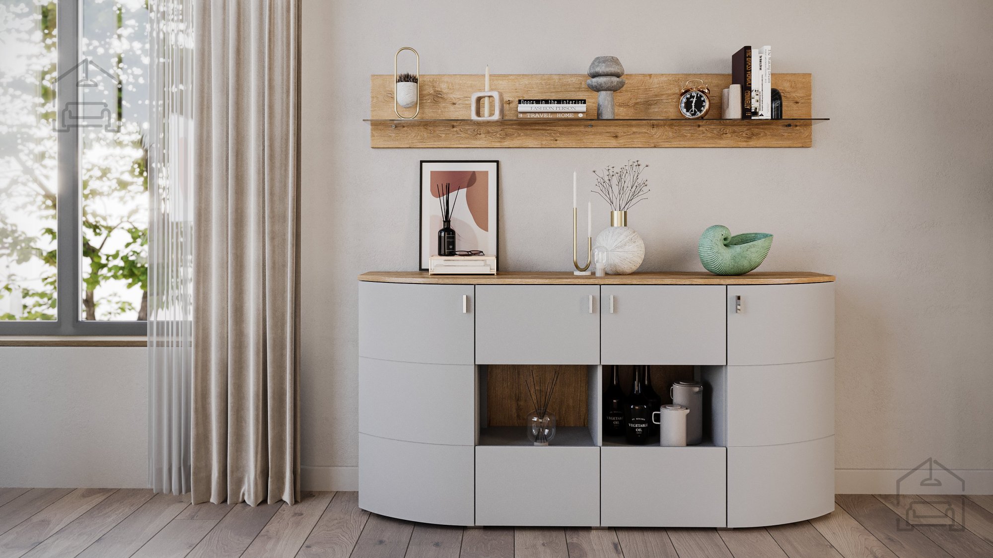 Elegante Farbkombination: Hellgrau und Evoke schaffen eine angenehme und einladende Atmosphäre, die sowohl für Entspannung als auch für gesellige Treffen geeignet ist. Diese moderne Farbpalette passt sich mühelos an verschiedene dekorative Elemente an und verleiht Ihrem Raum eine zeitlose Attraktivität.