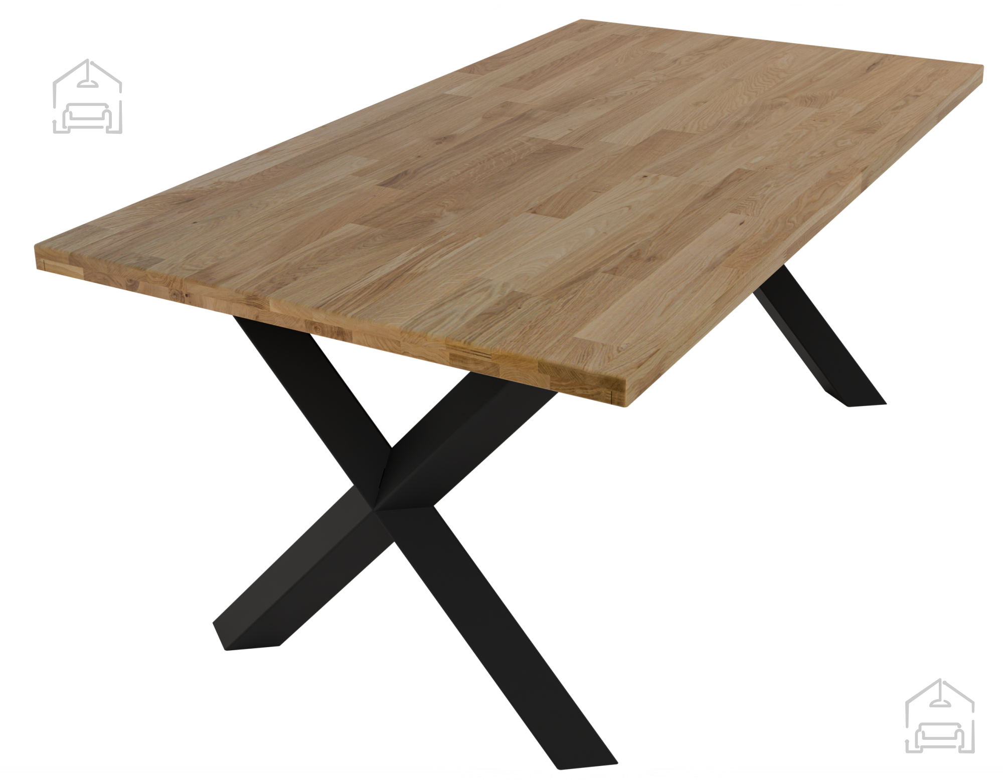 Stabilität und modernes Aussehen verleihen dem Tisch schwarze Metallbeine. Ihr minimalistisches Design ermöglicht es, dass sich der Tisch mühelos in jeden Innenraum einfügt und zugleich einen Hauch von industriellem Charme hinzufügt. Die Kombination aus Eiche und schwarzem Metall schafft eine einzigartige Harmonie zwischen Tradition und Moderne.