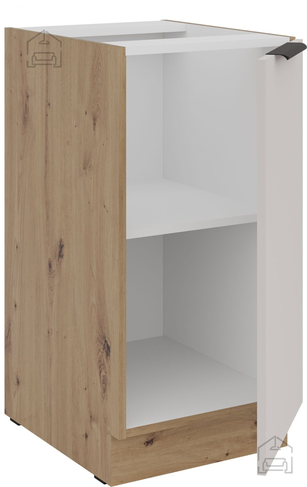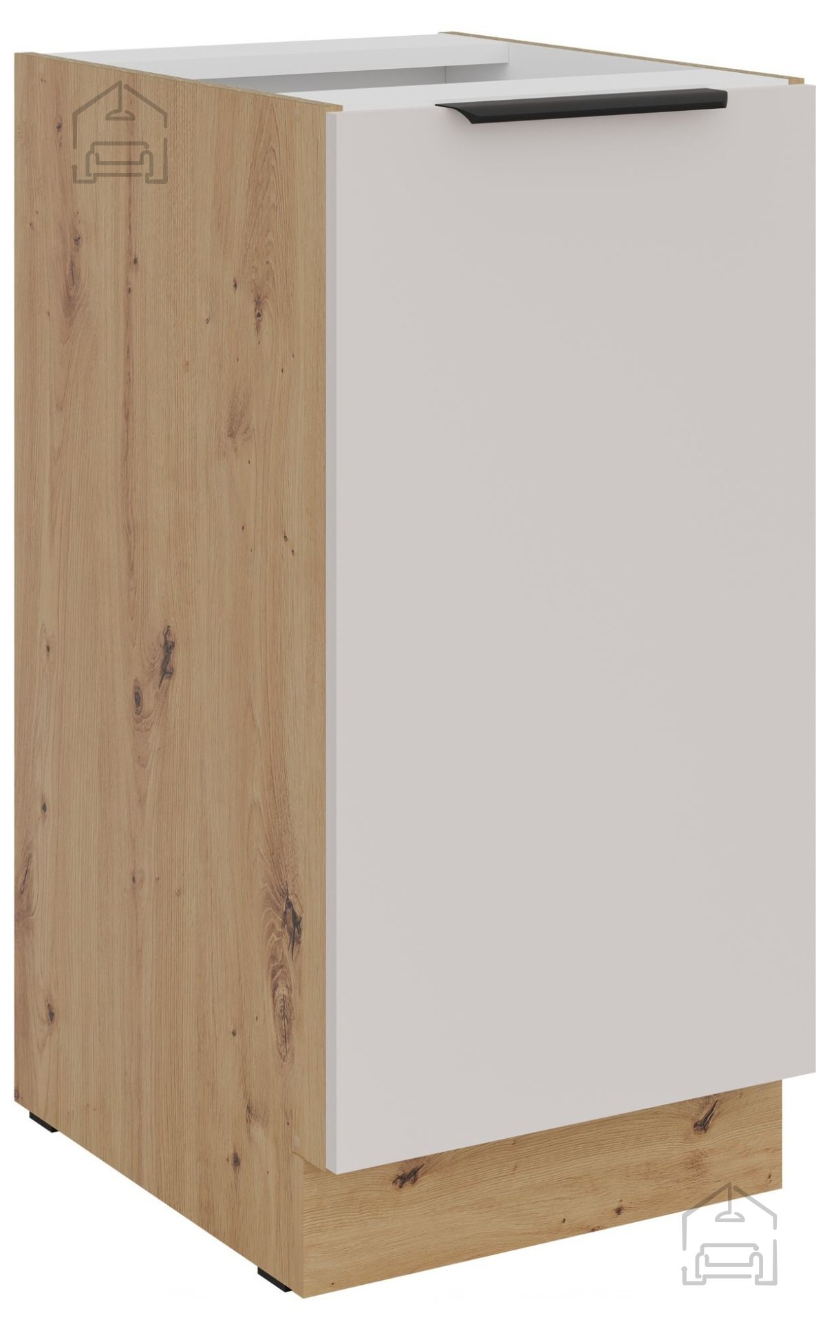 Die Küchenzeile Solea zeichnet sich durch hochwertige Materialien und ein durchdachtes Farbschema aus. Der Rahmen aus 16 mm starker laminierter Platte sorgt für Langlebigkeit und dauerhafte Nutzung, während die Korpusfarbe im Farbton Eichenholz Artisan einen Hauch natürlicher Wärme verleiht. Die Front in elegantem Kaschmir sorgt für ein anspruchsvolles Erscheinungsbild, das sich hervorragend mit modernen oder klassischen Dekorationselementen Ihres Zuhauses verbindet.