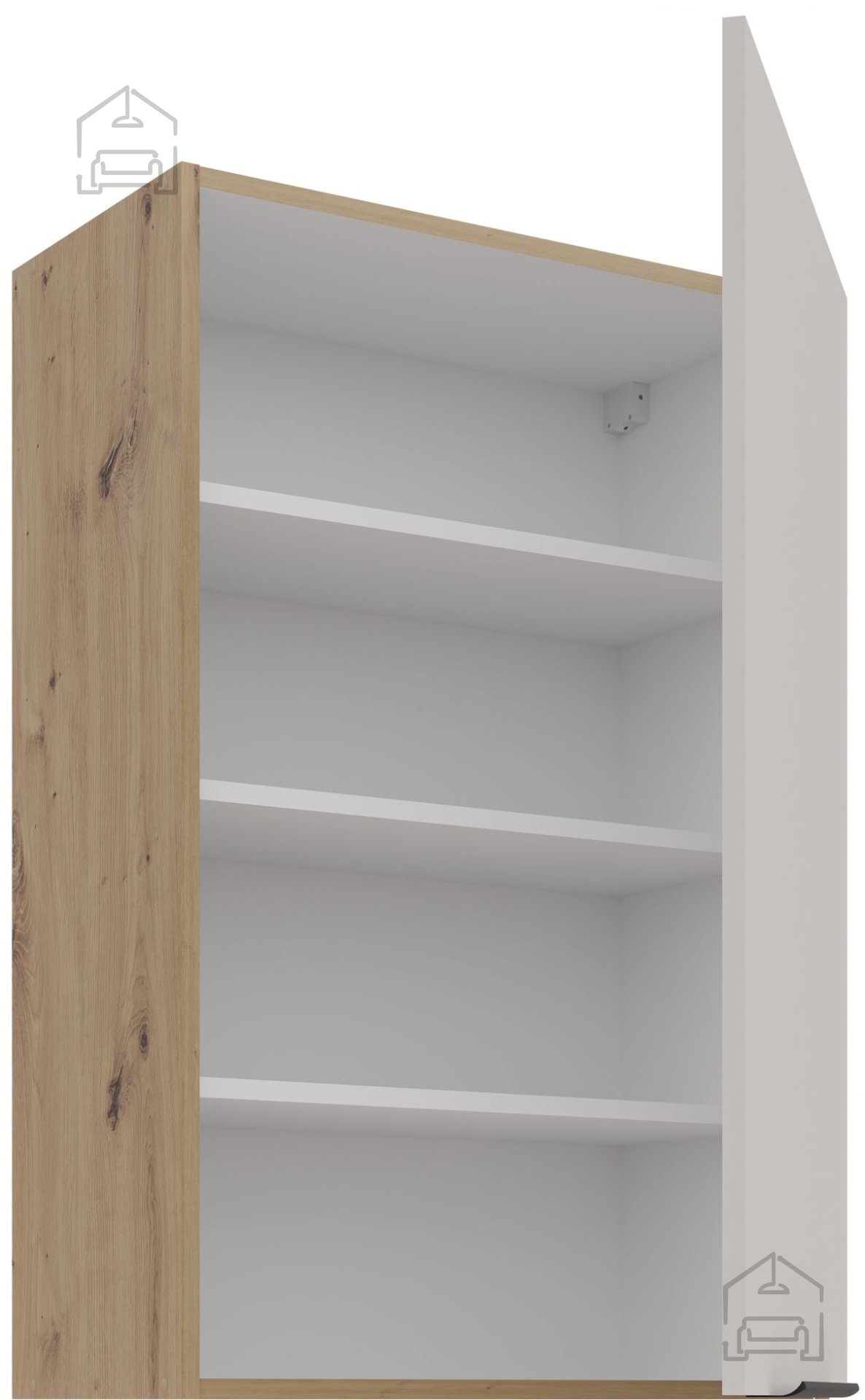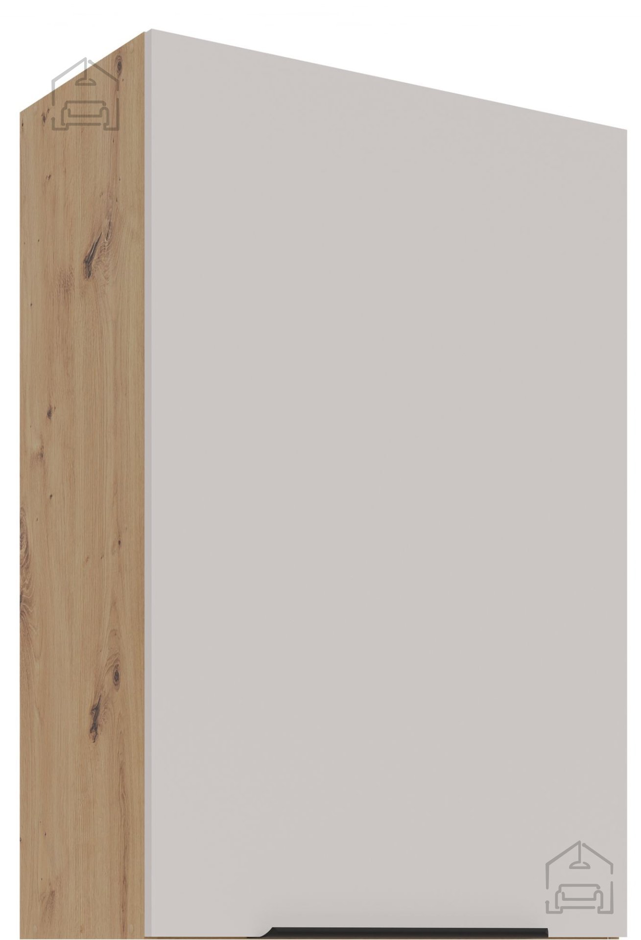 Die Küchenzeile Solea zeichnet sich durch hochwertige Materialien und ein durchdachtes Farbschema aus. Der Rahmen aus 16 mm starker laminierter Platte sorgt für Haltbarkeit und langanhaltende Nutzung, während die Korpusfarbe im Farbton Eiche Artisan einen Hauch natürlicher Wärme verleiht. Die Front in elegantem Kaschmir sorgt für ein anspruchsvolles Aussehen, das sich hervorragend mit modernen oder klassischen Dekorationselementen Ihres Zuhauses verbindet.