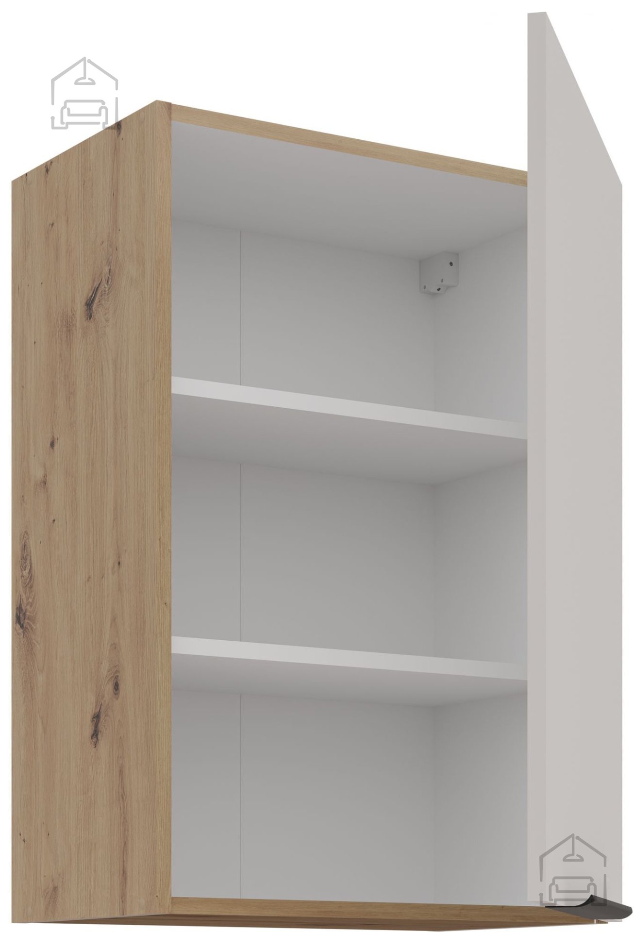 Die Küchenzeile Solea zeichnet sich durch hochwertige Materialien und ein durchdachtes Farbschema aus. Der Rahmen aus 16 mm starker laminierter Platte gewährleistet Haltbarkeit und langanhaltende Nutzung, während die Korpusfarbe im Farbton Eiche Artisan einen Hauch natürlicher Wärme verleiht. Die Front in elegantem Kaschmir sorgt für ein anspruchsvolles Erscheinungsbild, das sich perfekt mit modernen oder klassischen Dekorationselementen Ihres Zuhauses verbindet.