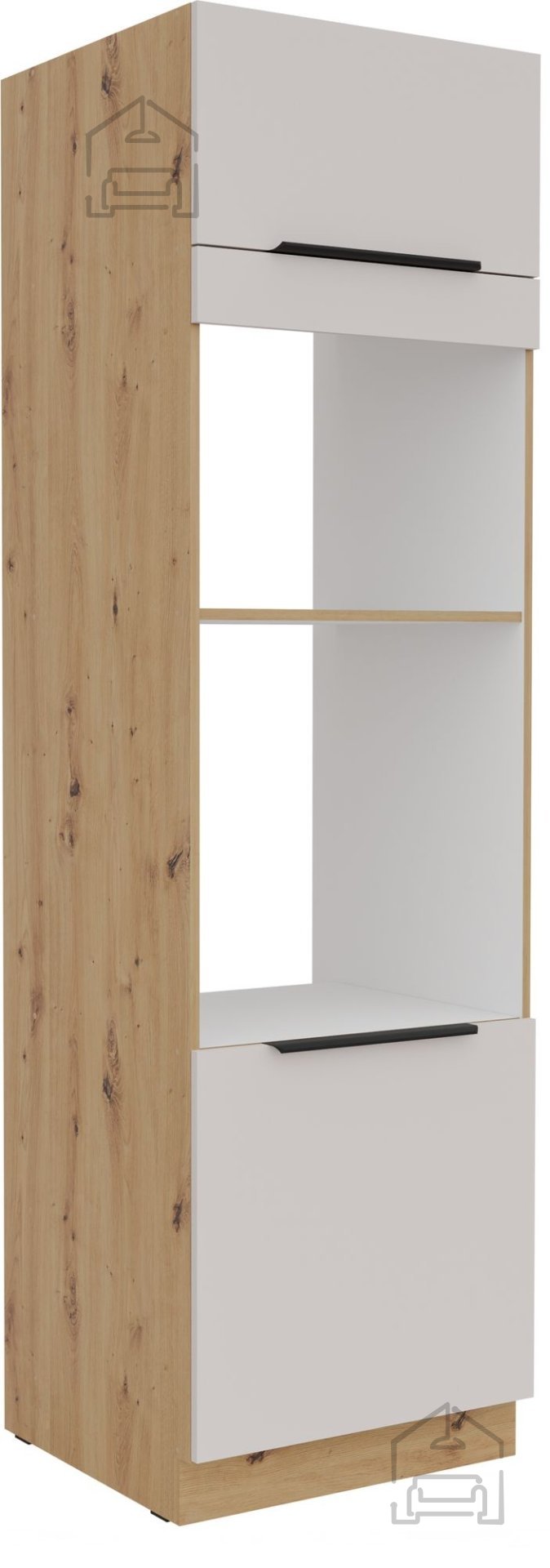 Die Küchenzeile Solea zeichnet sich durch hochwertige Materialien und ein durchdachtes Farbschema aus. Der Rahmen aus 16 mm starker laminierten Platte sorgt für Haltbarkeit und langfristige Nutzung, während die Korpusfarbe im Farbton Artisan-Eiche einen Hauch natürlicher Wärme verleiht. Die Front in elegantem Kaschmir sorgt für ein anspruchsvolles Erscheinungsbild, das sich perfekt mit modernen oder klassischen dekorativen Elementen Ihres Zuhauses verbindet.