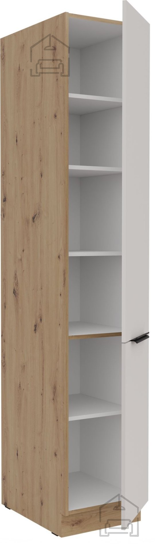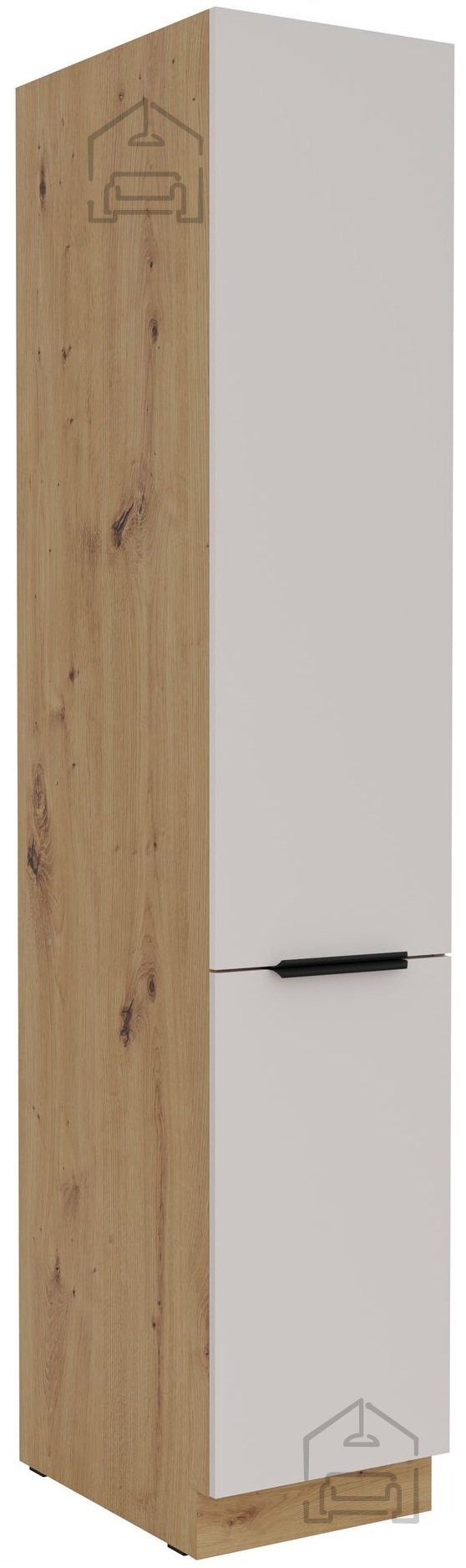 Die Küchenzeile Solea zeichnet sich durch hochwertige Materialien und ein durchdachtes Farbschema aus. Der Rahmen aus 16 mm starker laminierter Platte sorgt für Haltbarkeit und langjährige Nutzung, während die Korpusfarbe im Farbton Eiche Artisan einen Hauch natürlicher Wärme verleiht. Die Front in elegantem Kaschmir sorgt für ein raffiniertes Aussehen, das sich hervorragend mit modernen oder klassischen dekorativen Elementen Ihres Zuhauses verbindet.