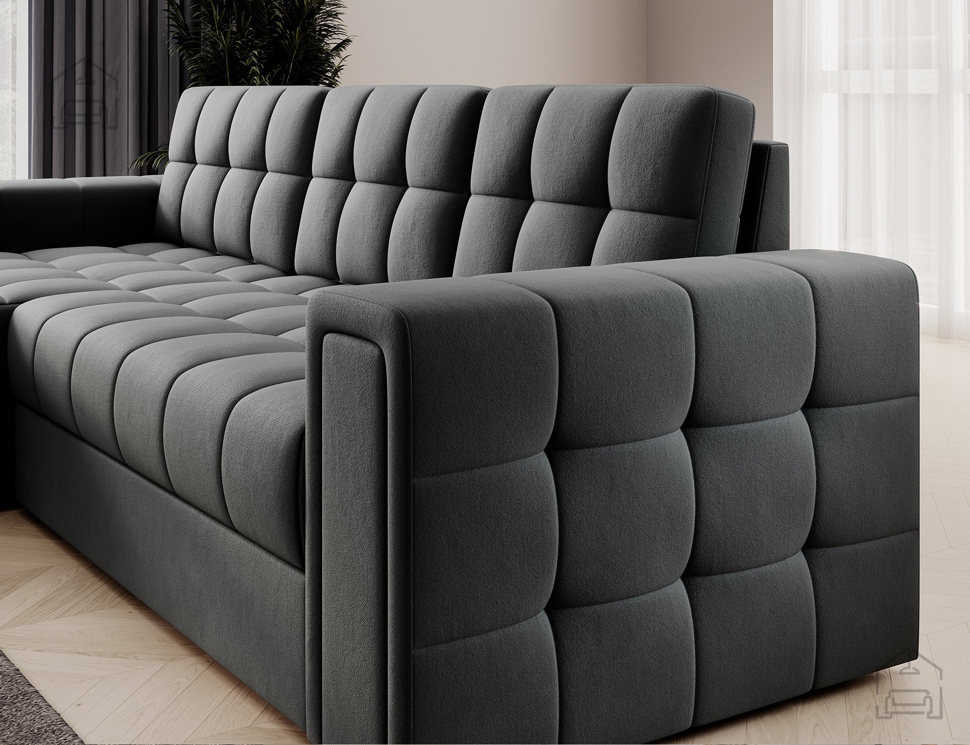 Täglicher Komfort, Ästhetik und Funktionalität sind die Hauptgründe, warum Sie sich für die Ecksofa-Garnitur Blenvi entscheiden sollten. Sie bietet nicht nur bequemes Sitzen mit einer Sitzhöhe von 42 cm und einer Sitztiefe von 56 cm, sondern auch erholsamen Schlaf durch die Liegefläche von 212x123 cm. Damit ist sie die ideale Lösung für alle, die multifunktionale Möbel suchen, die nicht zu viel Platz beanspruchen.