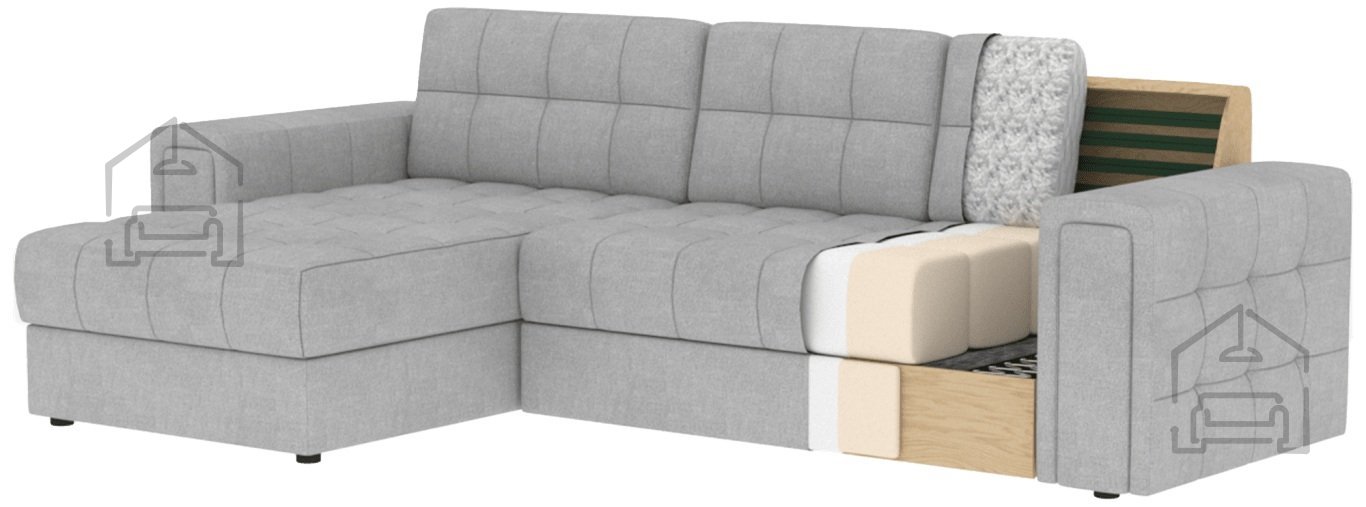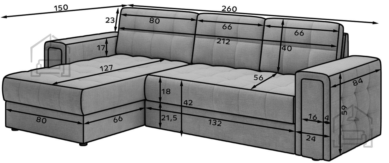 Die bei der Herstellung von Sofas und Sitzgarnituren verwendeten Materialien sind verschiedene Arten von Polyurethanschaum, Synthepon, Viscolatex usw. Es handelt sich um Produkte mit einem hohen Kompressions- und Elastizitätskoeffizienten, daher behält sich der Hersteller das Recht auf eine negative und positive Toleranz von +/- 2% in Breite und Länge vor.