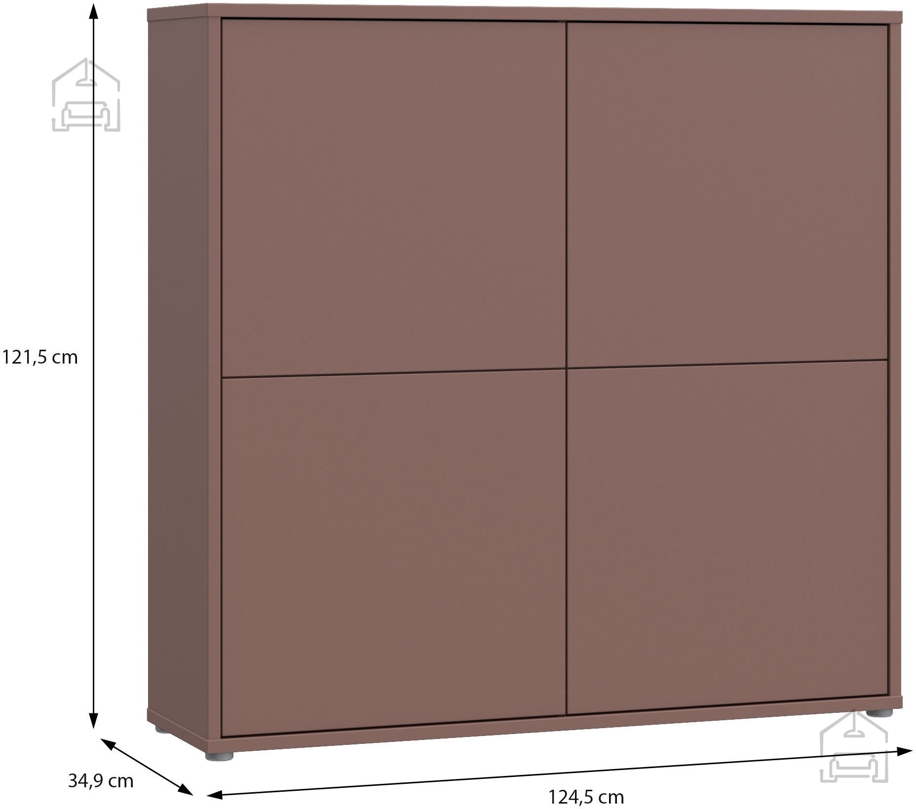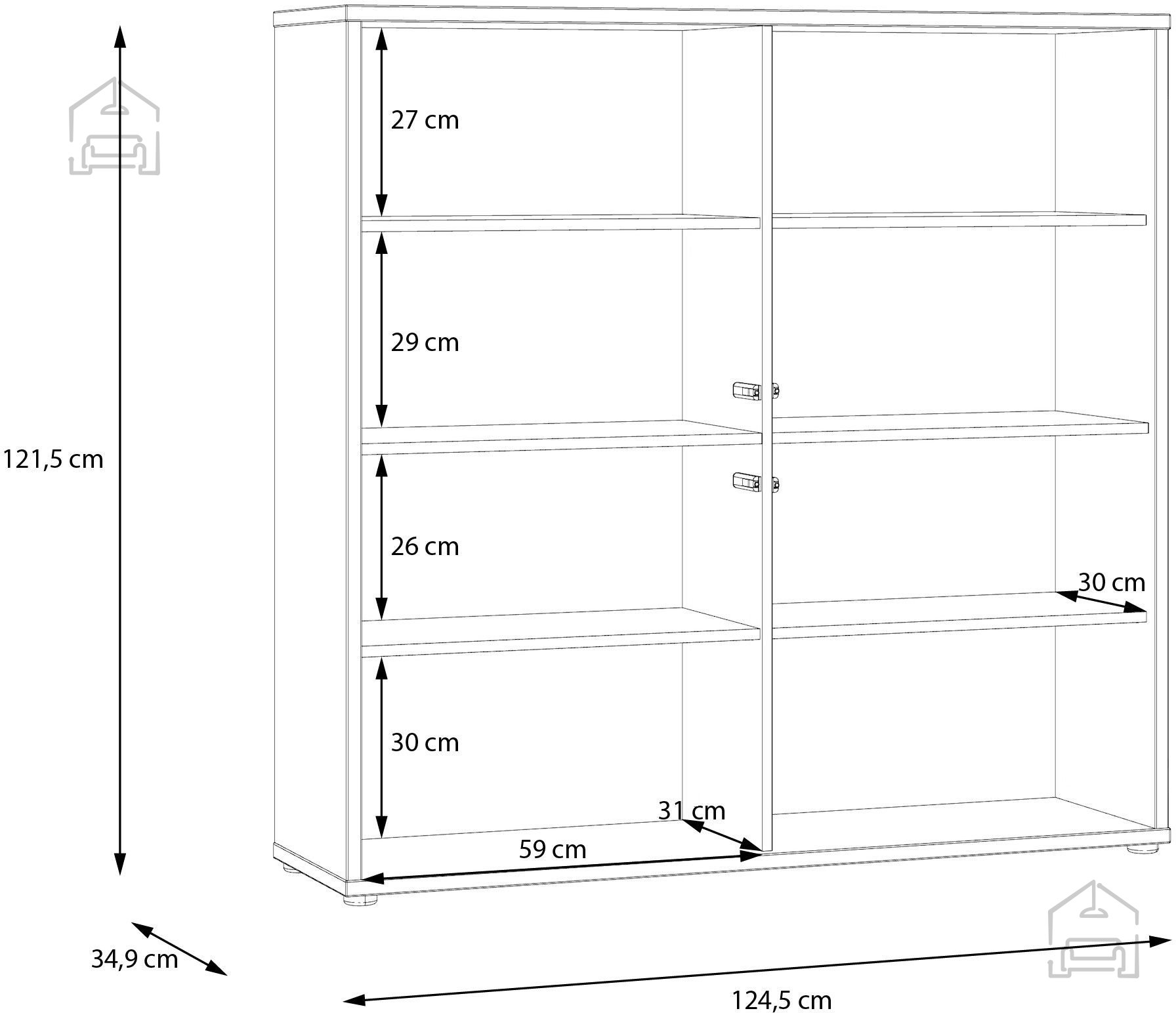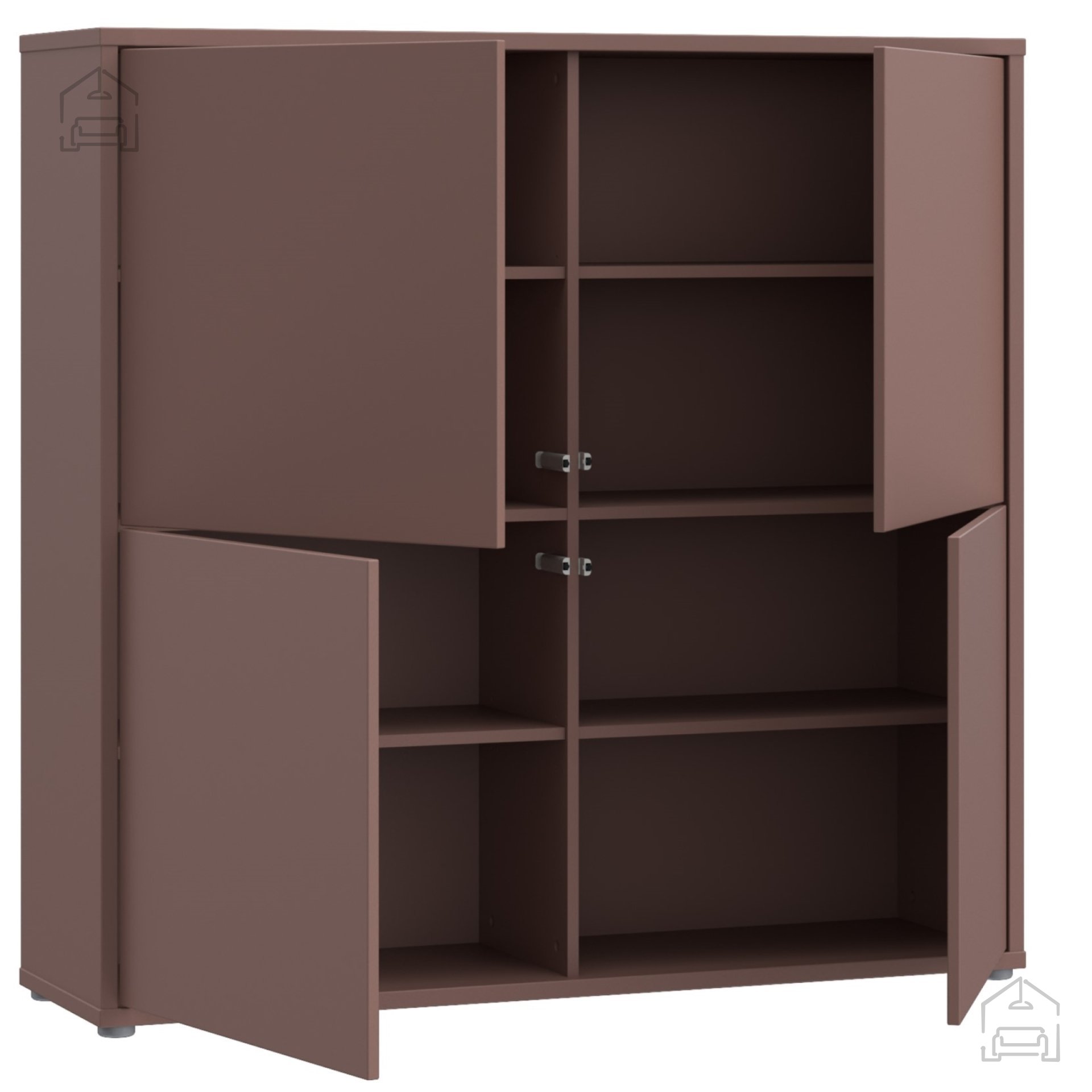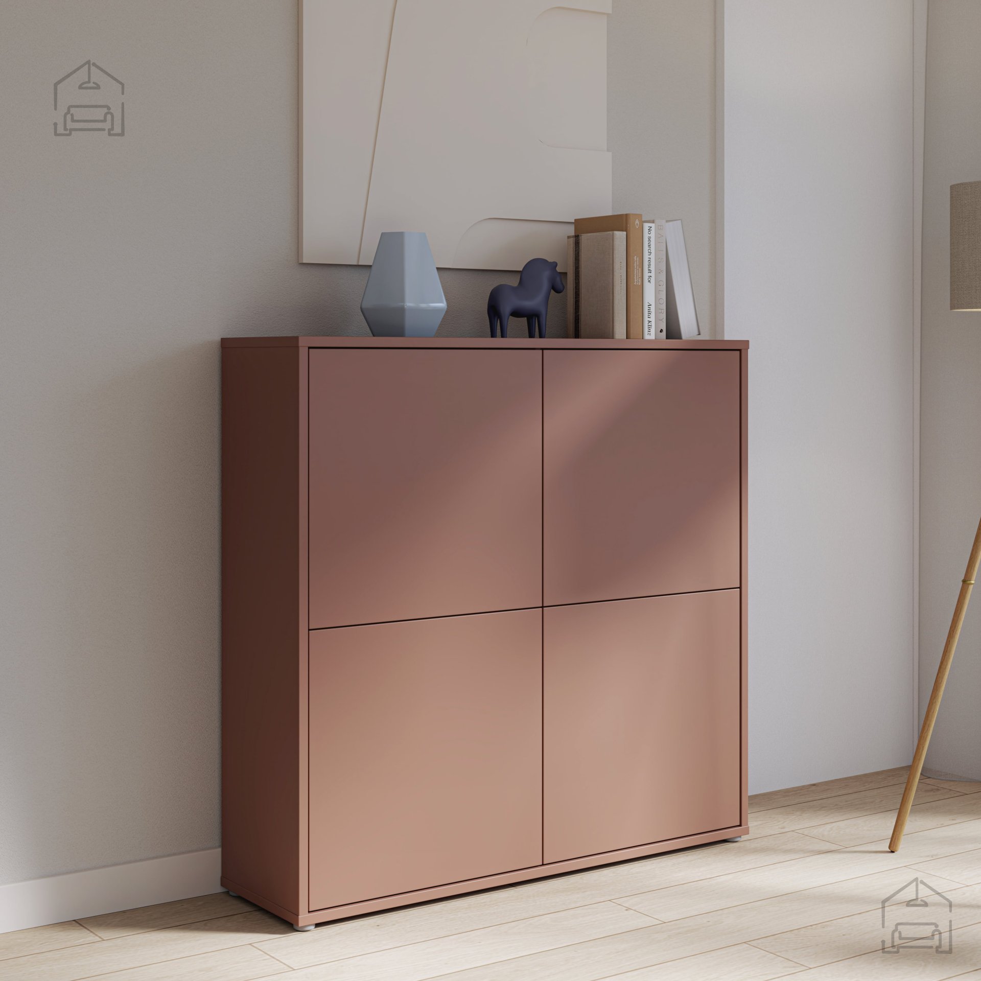 Die Kommode Alice Springs 321 verfügt über vier Türen, die den Zugang zu zwei separaten Abteilen eröffnen. Jedes Abteil ist zusätzlich durch eine vertikale Trennwand und einen horizontalen Einlegeboden unterteilt, was insgesamt acht verschiedene Stauraummöglichkeiten schafft. Dieses durchdachte Design ermöglicht es Ihnen, alles von Bürodokumenten, Büchern bis hin zu Besteck oder Kinderspielzeug mühelos zu organisieren. Feste Regalböden, die bis zu 15 kg tragen, sorgen für Stabilität und Sicherheit Ihrer Gegenstände.