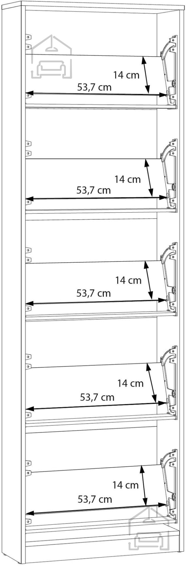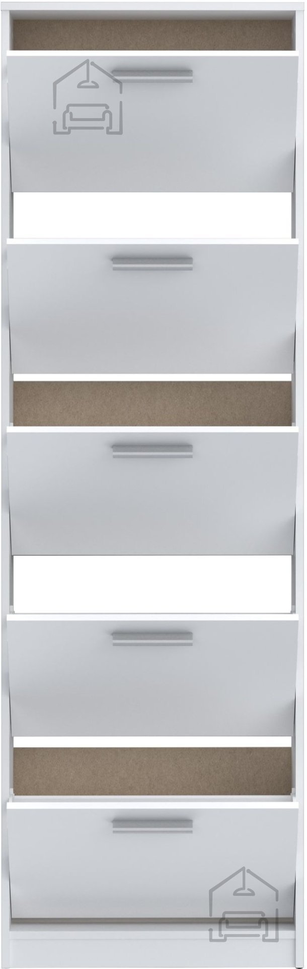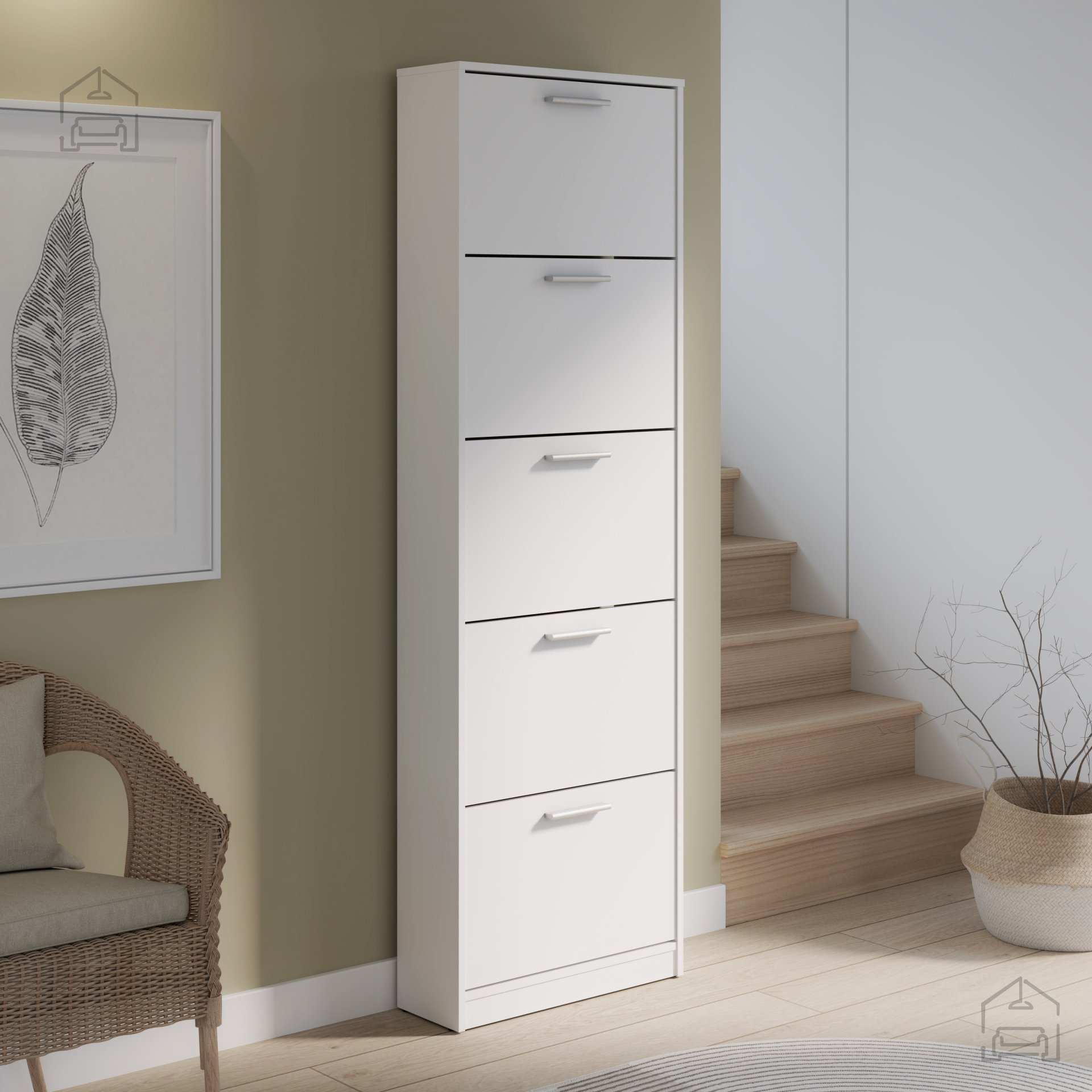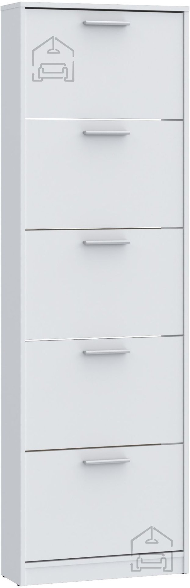 Der Schuhschrank Net 402712 misst nur 58x20.5x186 cm und ist damit ideal für schmale Flure, kleine Dielen oder Ecken im Schlafzimmer. Seine vertikale Form ermöglicht eine maximale Raumnutzung, während fünf Klappfächer ausreichend Platz für bis zu 10 Paar Schuhe bieten. Dieser praktische Schrank spart nicht nur wertvolle Bodenfläche, sondern trägt auch zu einem eleganten und aufgeräumten Erscheinungsbild Ihres Zuhauses bei.