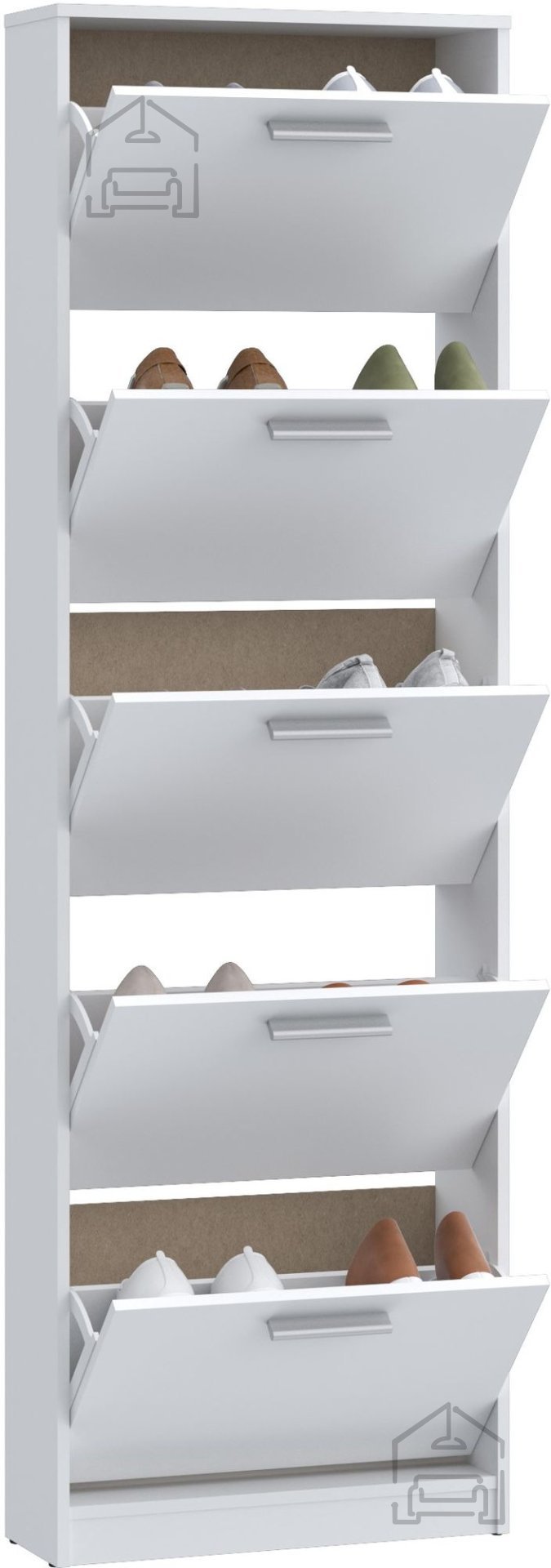 Mit fünf Klappfächern ermöglicht er die ordentliche Aufbewahrung von bis zu 10 Paar Schuhen und hilft, Ihren Raum frei von Unordnung zu halten. Ganz gleich, ob Sie Ihre wachsende Schuhsammlung organisieren oder einfach dafür sorgen möchten, dass Ihr Eingangsbereich ordentlich bleibt – der Schuhschrank Net 402712 ist die perfekte Wahl für Sie. Investieren Sie in dieses außergewöhnliche Möbelstück und genießen Sie die Harmonie eines aufgeräumten Zuhauses.