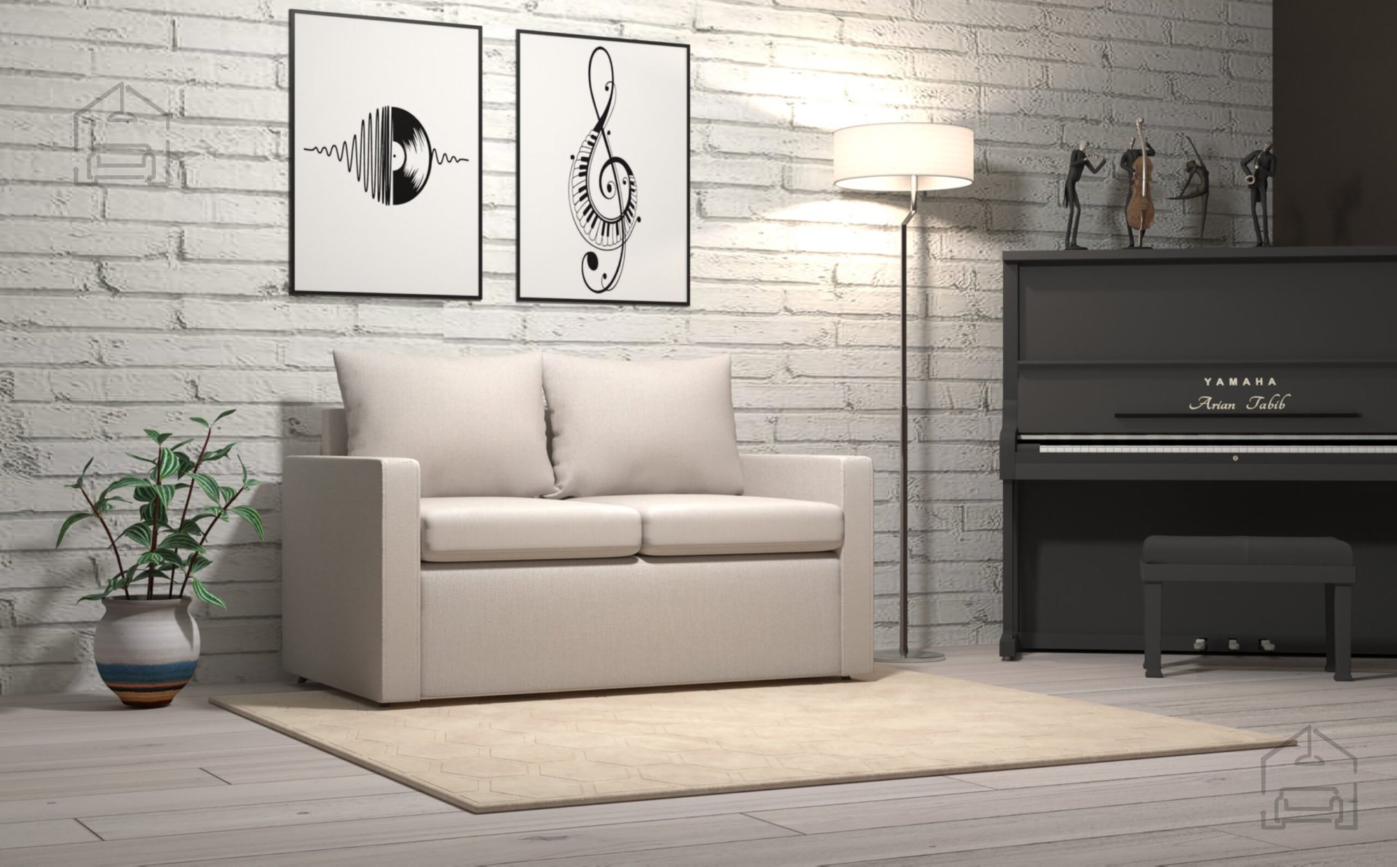 Der Stoff Fancy 06, der das Sofa umgibt, ist in verschiedenen Farben erhältlich, sodass Sie den Farbton wählen können, der am besten zur Einrichtung des Kinderzimmers passt. Die Farbvielfalt trägt zur Schaffung von Freude und Kreativität im Raum bei, während die Kunststofffüße (2,5 cm) Stabilität bieten, ohne den Boden zu zerkratzen.