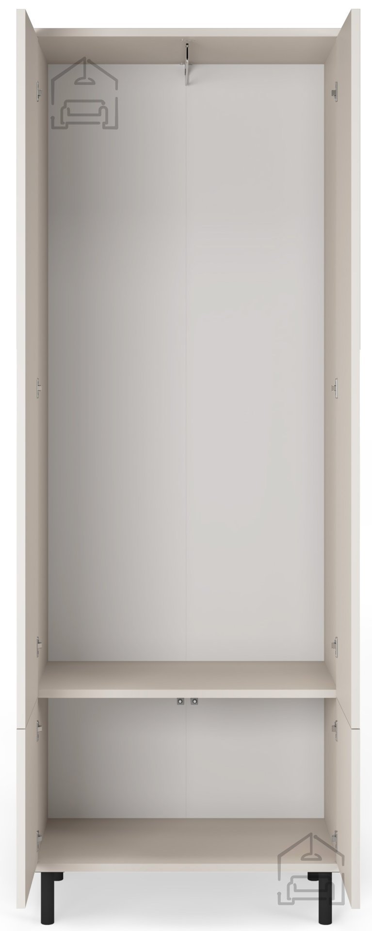Der Schrank Rayo besteht aus einer hochwertigen laminierten Platte mit 16 mm Stärke, die außergewöhnliche Stabilität und eine lange Lebensdauer garantiert. Seine Farbe, Cashmere, verleiht einen Hauch moderner Eleganz und passt perfekt zu verschiedenen Einrichtungsstilen. Mit der Push-to-Open-Funktion ist die Bedienung des Schranks einfach und reibungslos, was eine schnelle und effiziente Organisation Ihrer Kleidung und Accessoires ermöglicht.