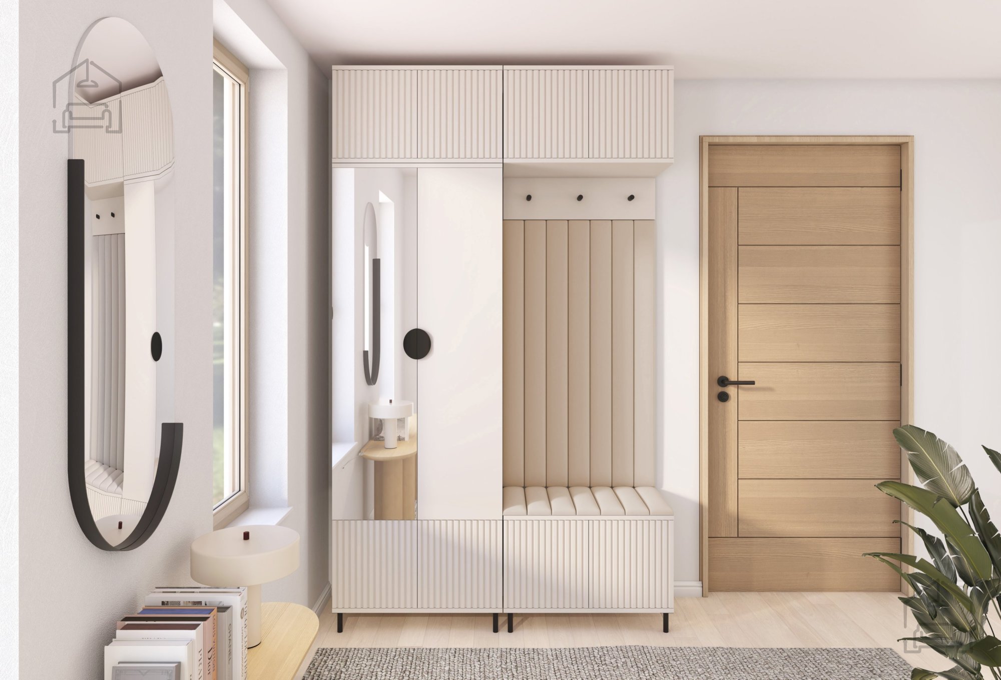 Gefertigt aus 16 mm laminierten Platten, vereint das Flur-Set Rayo 2 Langlebigkeit und Eleganz. Die Farbe Cashmere bringt Sanftheit und Raffinesse, die perfekt zu verschiedenen Einrichtungsstilen passt. Die 12 cm hohen Metallfüße sorgen für Stabilität und verleihen dem gesamten Design einen modernen Touch. Der Stoff Trinity 06, wie auf dem Bild gezeigt, ergänzt das Gesamtbild mit seiner weichen Textur und seinem ästhetischen Erscheinungsbild.