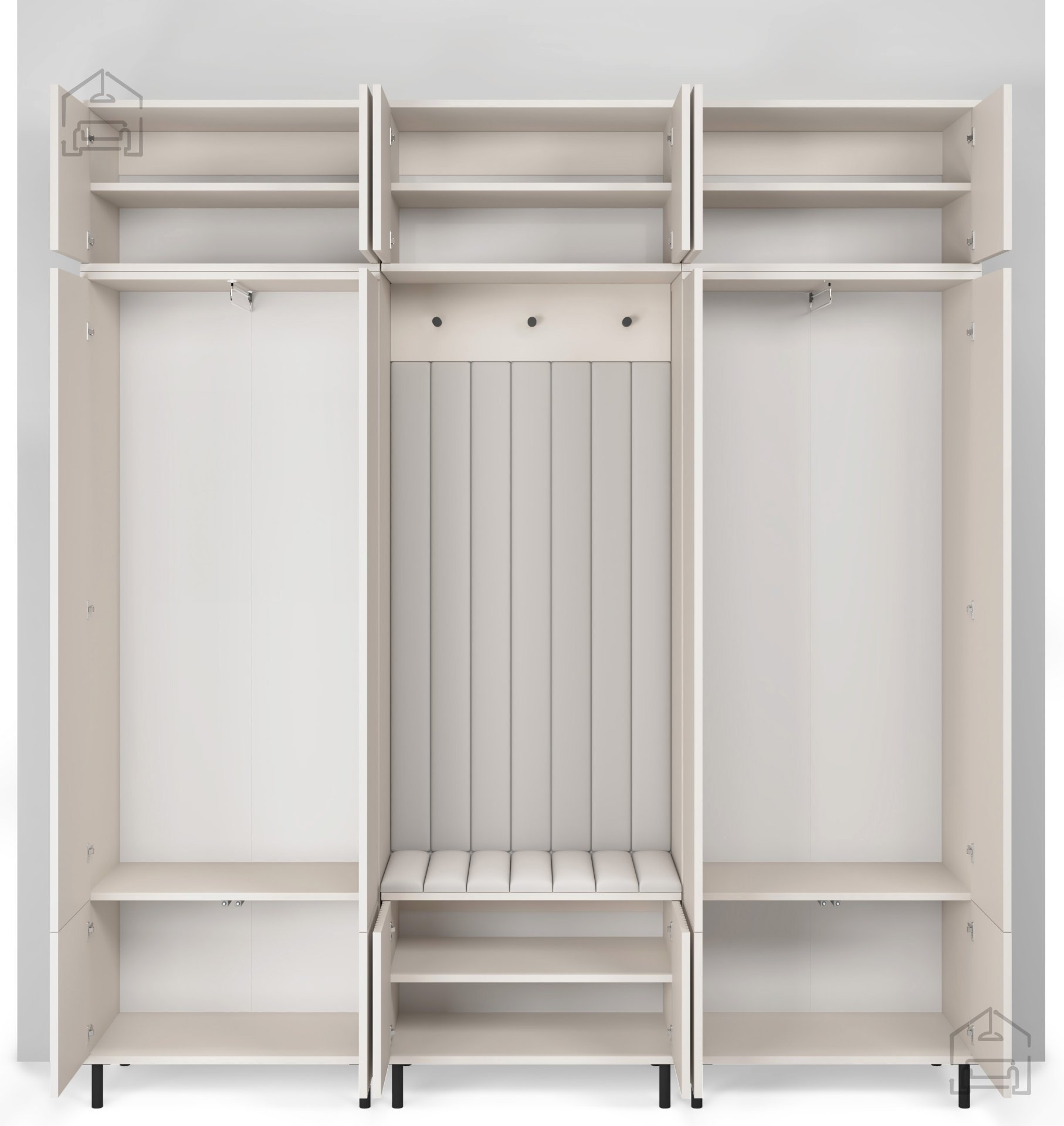 Entdecken Sie zeitlose Eleganz und höchste Funktionalität mit dem Flur-Set Rayo 3. Dieses außergewöhnliche Set ist für all jene entworfen, die ihrem Zuhause einen Hauch modernen Designs und perfekte Organisation verleihen möchten. Mit seiner raffinierten Cashmere-Farbe und den hohen Metallfüßen ist Rayo 3 die ideale Lösung für jeden Flur, der mehr Platz und Ordnung benötigt.