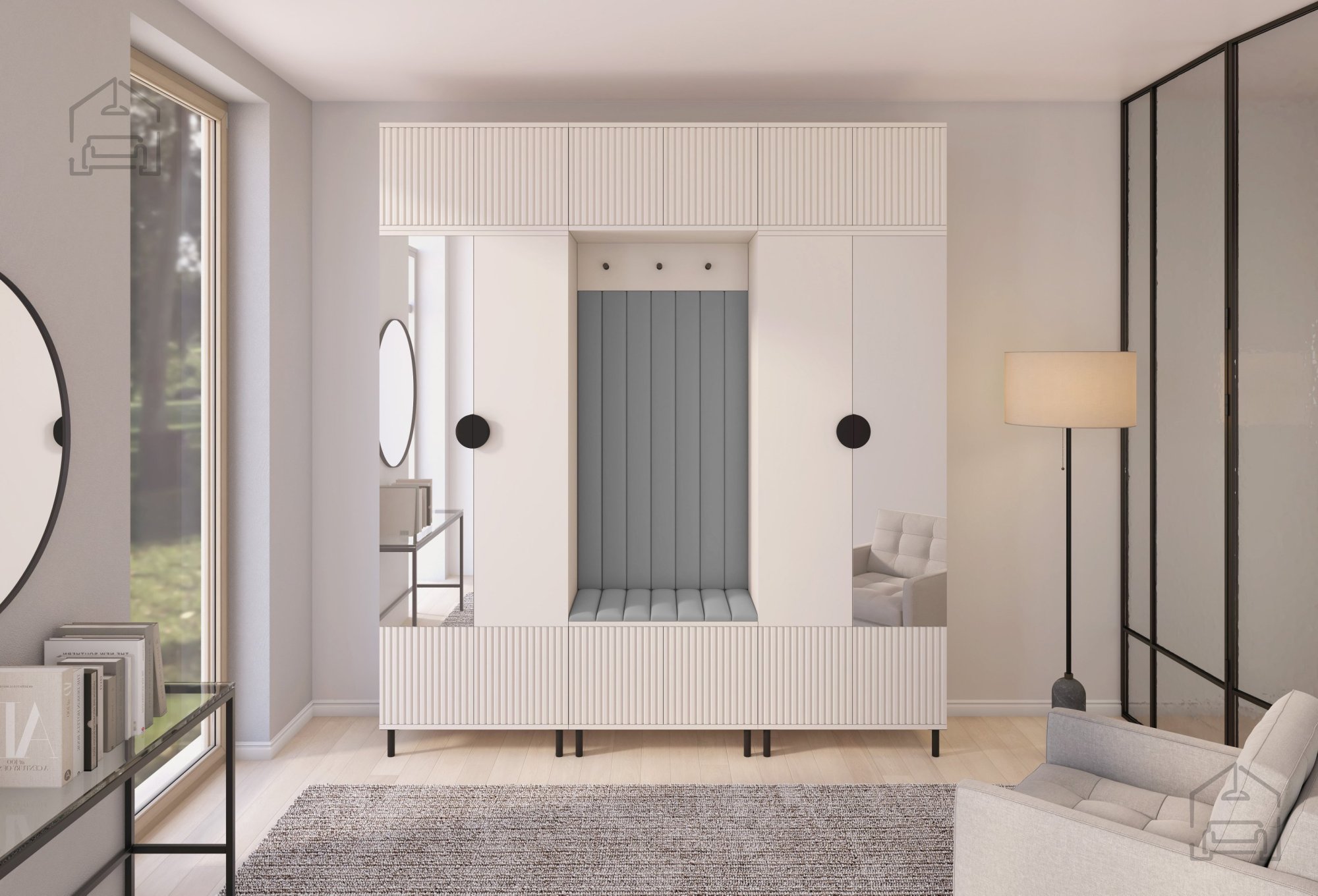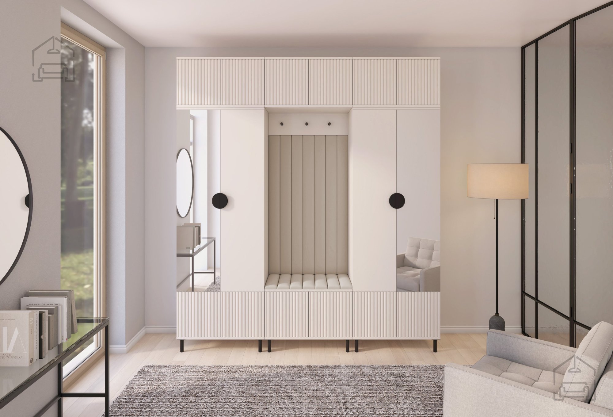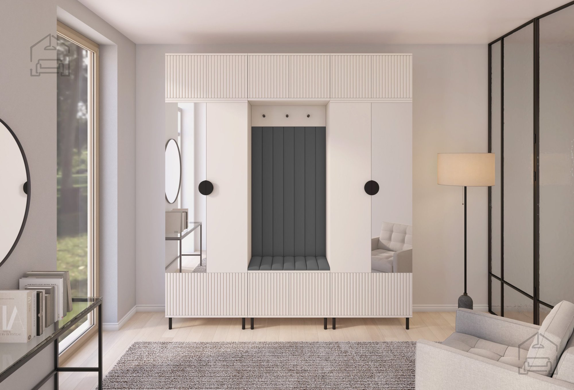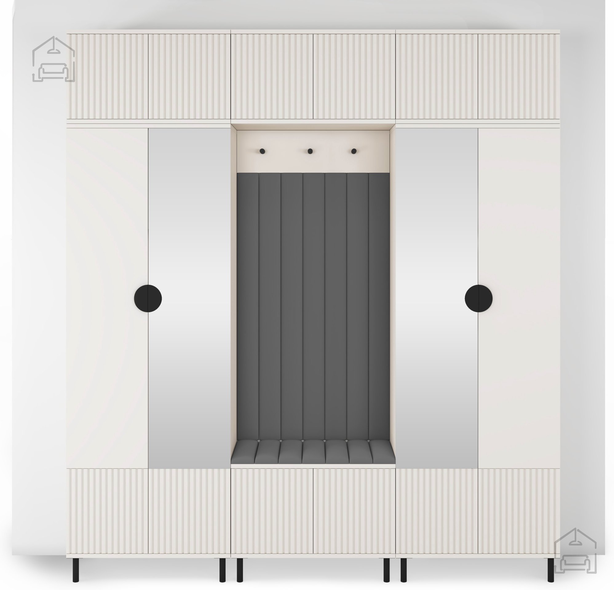 Das Flur-Set Rayo 3 bietet nicht nur ästhetische Anziehungskraft, sondern auch außergewöhnliche Praktikabilität. Mit zwei Schränken mit Spiegel, Aufsätzen, einem Schuhschrank, einem Hängeschrank und einer Garderobe bietet dieses Set optimalen Stauraum für all Ihre Utensilien. Schwarze Metallgriffe in Halbkreisform verleihen Eleganz und sorgen für einfache Handhabung.