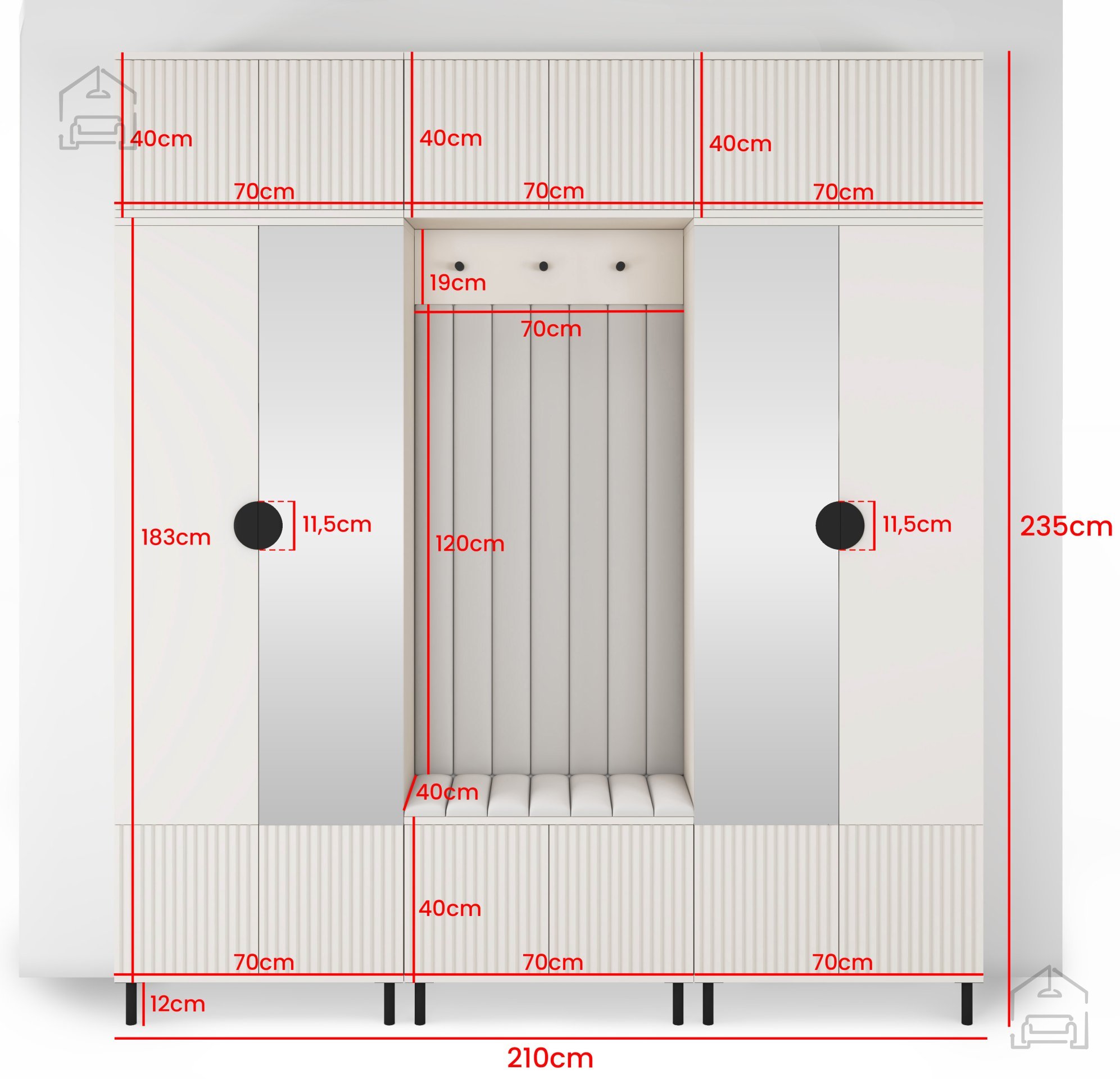 Die 12 cm hohen Füße sorgen für Stabilität und erleichtern die Reinigung unter den Schränken. Mit dem „Push to Open“-System ist die Nutzung dieses Sets einfach und intuitiv – weniger Aufwand und mehr Freude im täglichen Gebrauch.