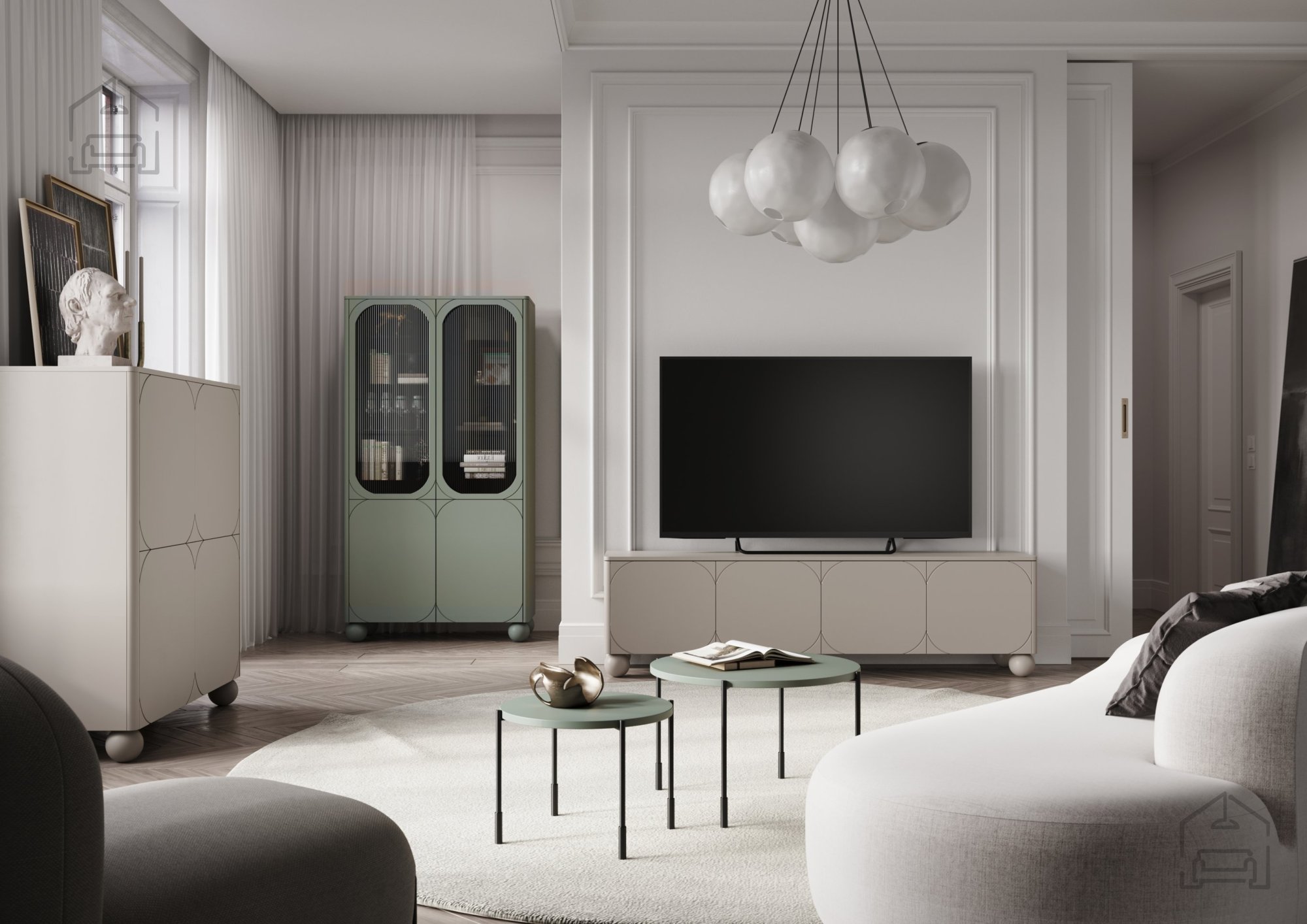 Sonatia II verfügt über innovative Funktionen wie Soft-Close und Push-to-Open, die eine leise und reibungslose Bedienung ohne unnötigen Lärm ermöglichen. Die runden Holzbeine, 12 cm hoch, verleihen einen Hauch von Wärme und Natürlichkeit und sorgen gleichzeitig für Stabilität.