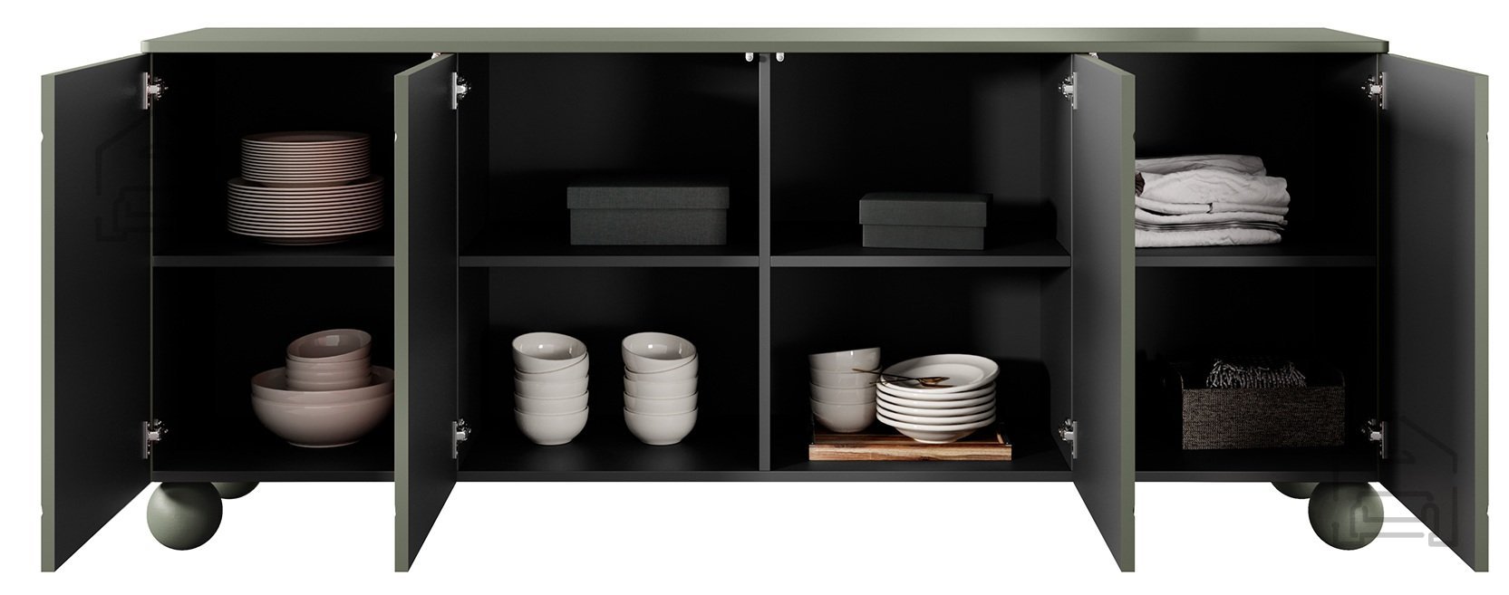 Wählen Sie die Kommode Sonatia II 200 4D in olivgrüner Farbe und bereichern Sie Ihren Raum mit der Eleganz und Praktikabilität, die diese außergewöhnliche Kommode bietet. Lassen Sie sich vom schönen Design verführen und genießen Sie die Funktionalität, die für das moderne Leben geschaffen wurde.