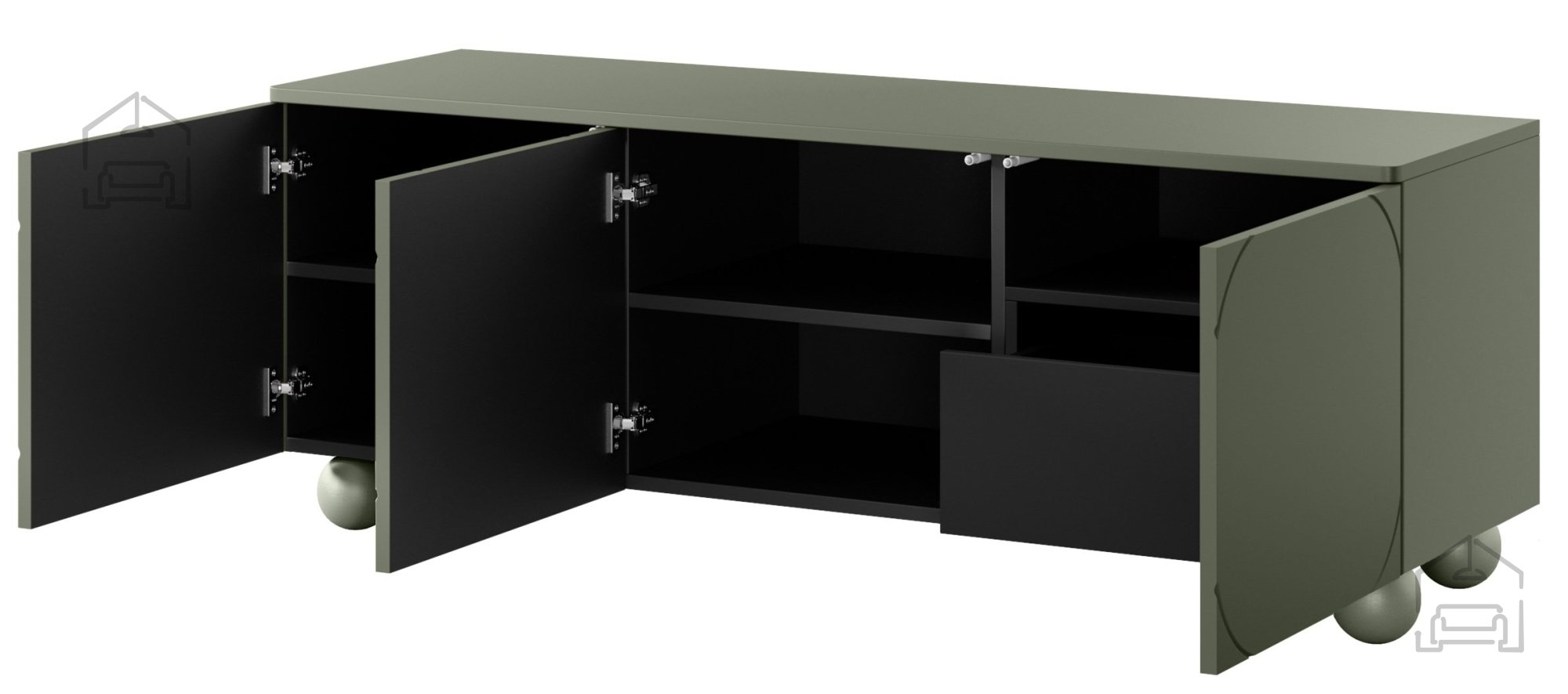 Die TV-Kommode Sonatia II in einem charmanten olivgrünen Farbton bringt das perfekte Gleichgewicht zwischen modernem Design und Praktikabilität, das sich nahtlos in jedes moderne Zuhause einfügt. Mit den Abmessungen 150x45x57 cm ist diese Kommode so konzipiert, dass sie sowohl den ästhetischen als auch den funktionalen Anforderungen Ihres Wohnzimmers gerecht wird.
