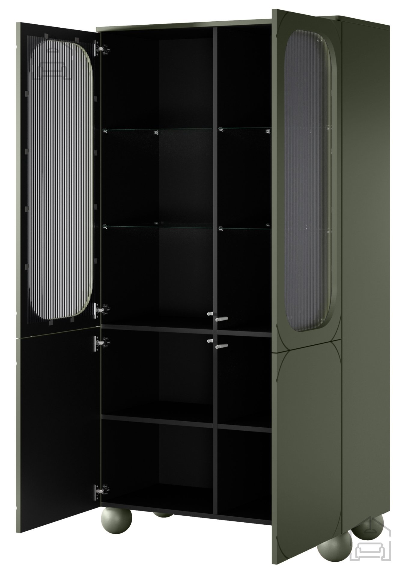 Die Vitrine Sonatia II 100 4D in Olivgrün ist die richtige Wahl für diejenigen, die eine einzigartige Kombination aus Funktionalität und Stil schätzen. Diese raffiniert gestaltete Vitrine verleiht Ihrem Zuhause einen Hauch von Eleganz und Modernität, den Sie nirgendwo anders finden werden.