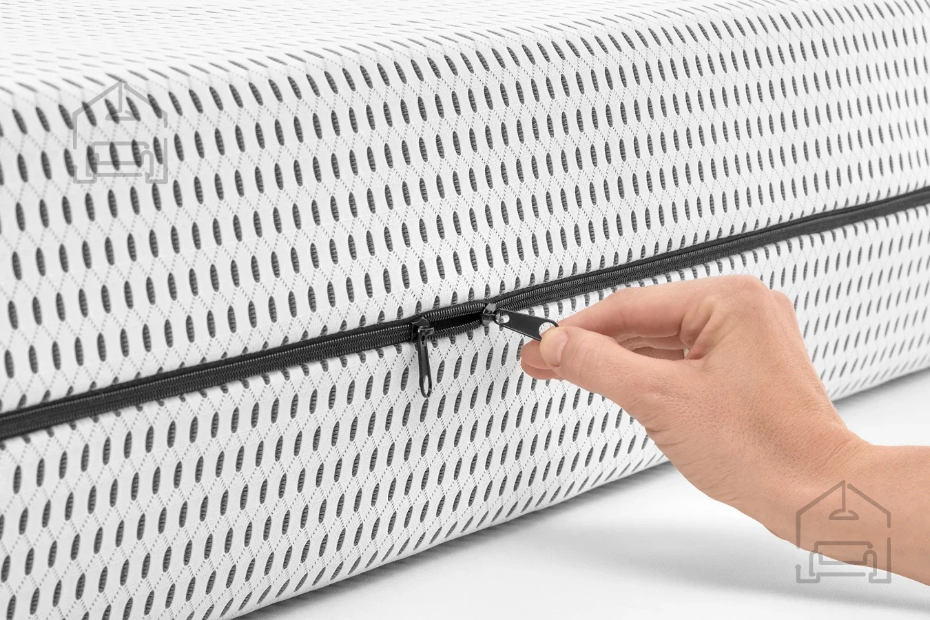 Die Struktur des SPACE-Bezugs ermöglicht es, dass Luft ungehindert ins Innere der Matratze eindringt, was eine richtige Belüftung der gesamten Matratze gewährleistet. Dadurch werden alle Verunreinigungen und Allergene nach außen geblasen. Darüber hinaus ermöglicht ihr Design eine korrekte Feuchtigkeitsableitung, wodurch die Schimmelbildung verhindert wird. Der Bezug besteht aus hochwertigem Polyestergewebe. Er kann bei 30 °C gewaschen werden, und der eingebaute Reißverschluss erleichtert das Abnehmen und Aufziehen. Bezug mit aktiver Probiotika-Technologie Purotex zur Bekämpfung von Hausstaubmilben.