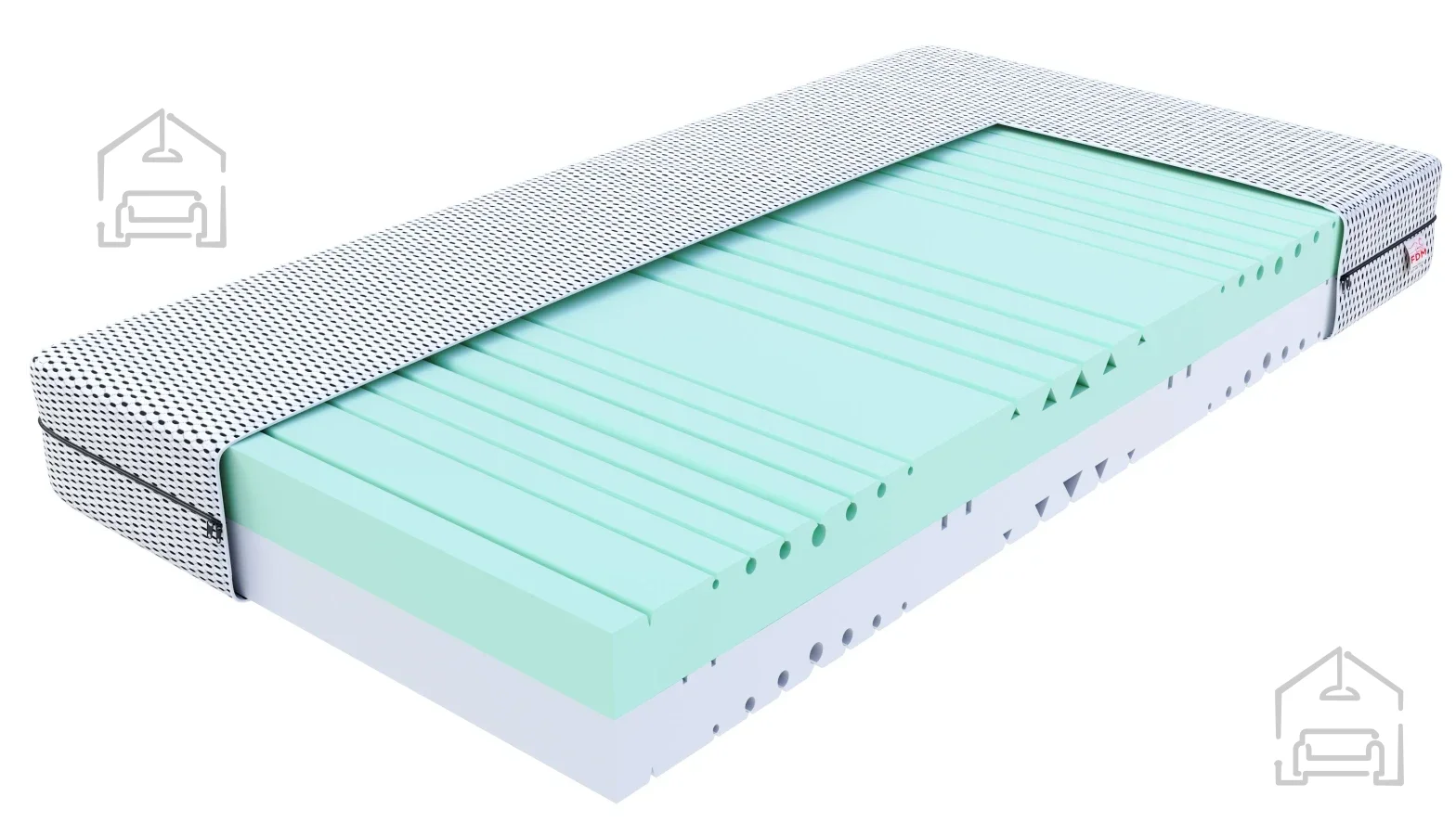 Das Modell SPACE besticht durch seine Schlichtheit. Eine Kombination aus zwei Schäumen mit außergewöhnlichen Körperstützeigenschaften. Im Modell SPACE wird eine Reihe spezieller Einschnitte verwendet, die 7 Zonen des Komforts bestimmen. Die Matratze passt sich leicht den natürlichen Körperformen an. Die dabei entstehenden Kanäle beeinflussen nicht nur den Nutzungskomfort, sondern verbessern auch den Luftstrom erheblich.