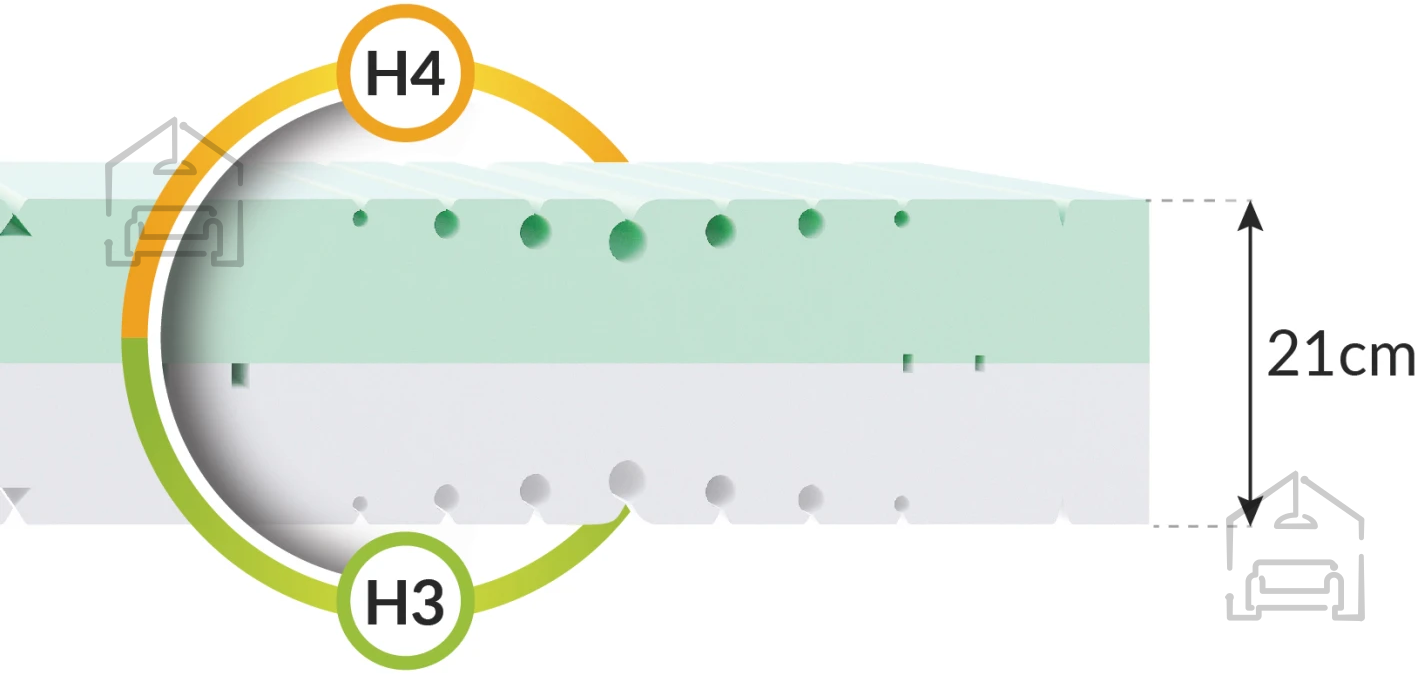 Hochwertiger Schaum ist eine zusätzliche Füllung der Matratze. Dieser Schaum ist sehr widerstandsfähig gegen Verformung und Biegung. Er sorgt für eine angemessene Körperanpassung, hat eine gute Luftstruktur, ist elastisch und federnd. Hochwertiger Schaum bietet eine sehr gute Unterstützung der Wirbelsäule. Er absorbiert Bewegungen gut, daher ist er eine ausgezeichnete Lösung für Paare, die empfindlich auf die Bewegungen des Partners reagieren.