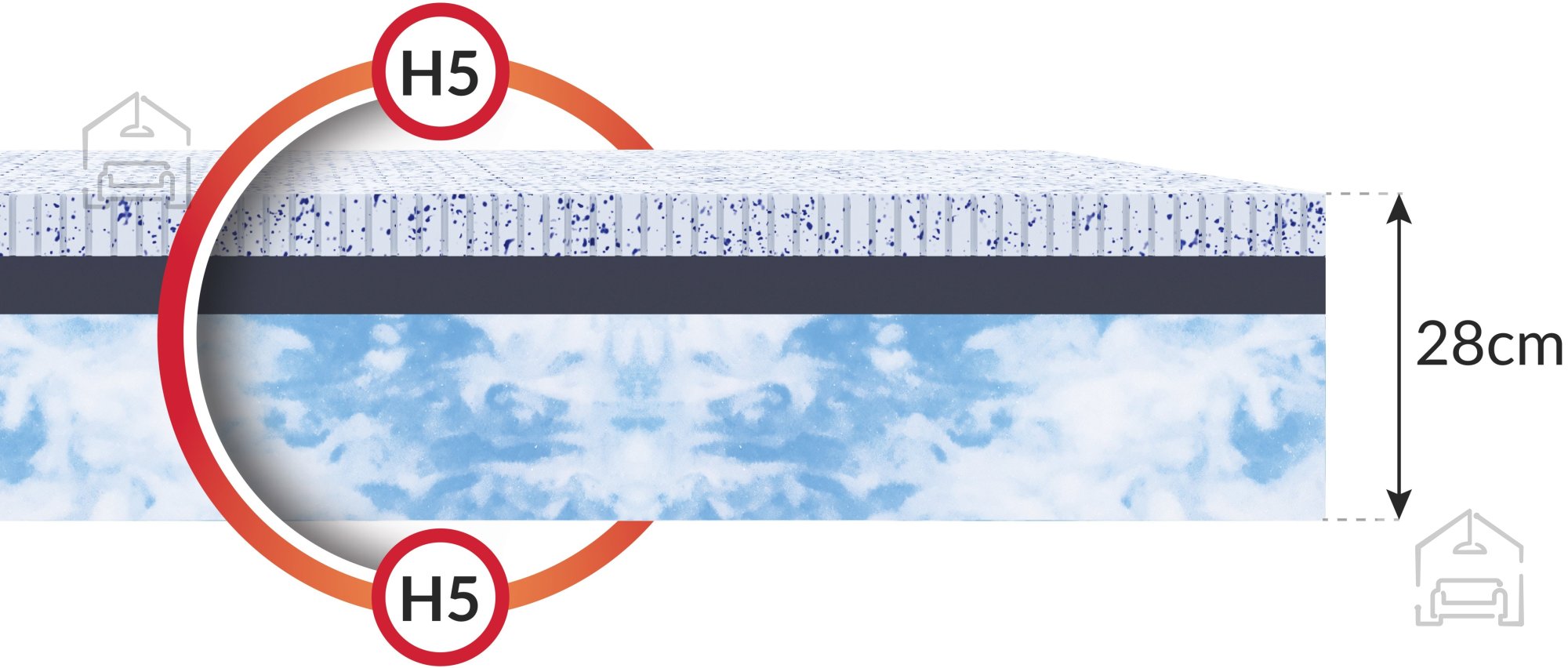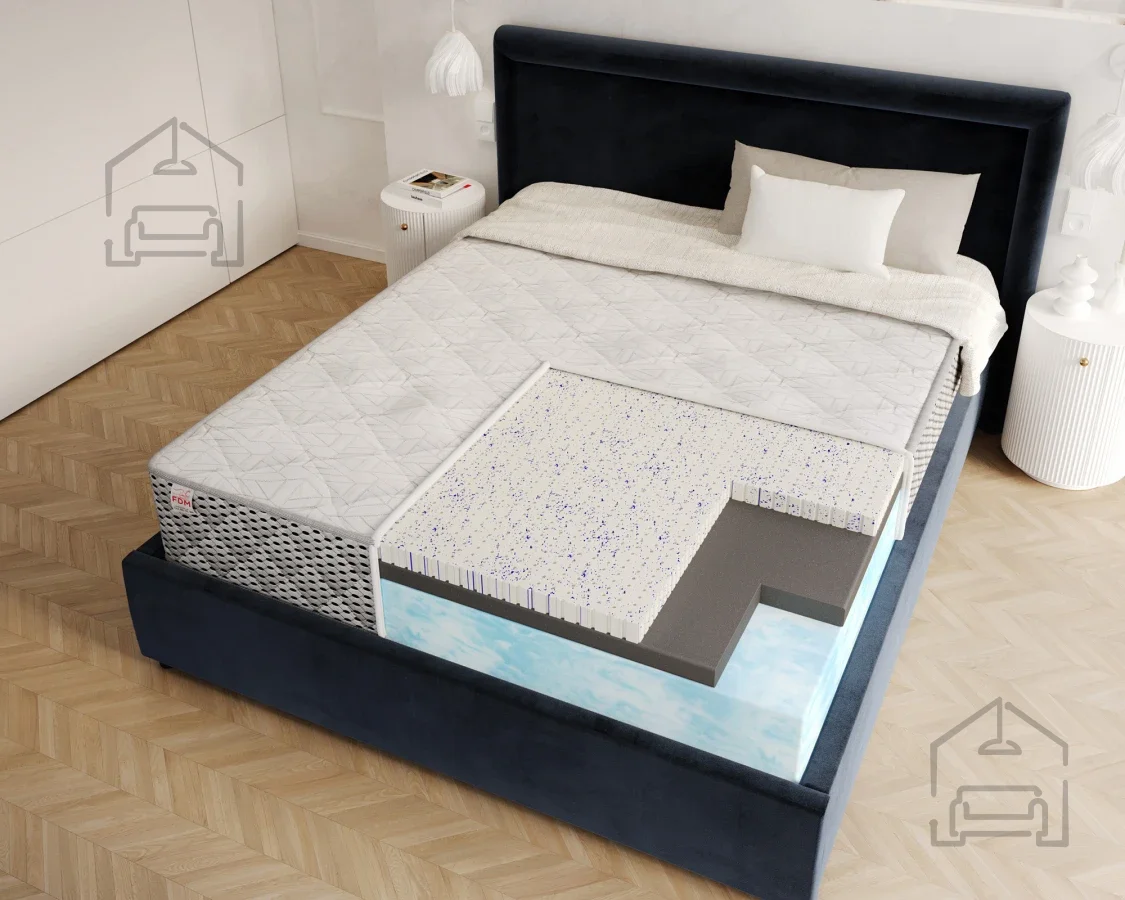 - Begrenzte Feuchtigkeitsansammlung – trockenere Schlafumgebung. Feuchtigkeit dringt nur bis zu einer Schicht in die Matratze ein, was verhindert, dass die Matratze Feuchtigkeit in die Tiefe zieht, und sie trocknet schneller.