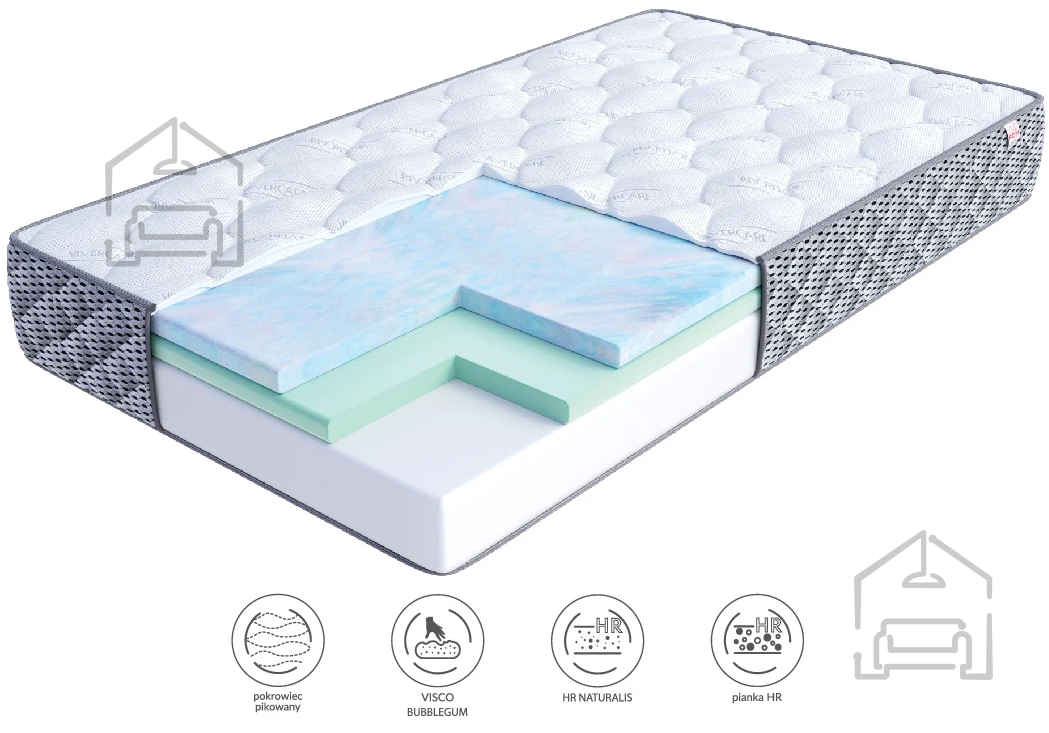Das Modell NORDIC ist eine fortschrittliche Konstruktion, die drei Schichten synthetischer Schäume kombiniert, von denen jede einzigartige Eigenschaften hat. Die Basis der Matratze ist ein 14 cm dicker hochflexibler HR-Schaum, der dank erhöhter Elastizität und Widerstandsfähigkeit gegen Verformungen außergewöhnlichen Komfort und Haltbarkeit bietet. Die poröse Struktur des HR-Schaums ermöglicht einen freien Luftstrom, was die Bildung von Schimmel und Pilzen verhindert. Auf der anderen Seite befindet sich ein moderner HR NATURALIS-Schaum mit einer Dicke von 5 cm, der sich durch hohe Elastizität, Feuerbeständigkeit und außergewöhnliche Widerstandsfähigkeit gegen dynamische Belastungen auszeichnet. Im zentralen Teil der Matratze befindet sich ein 4 cm dicker thermoplastischer Schaum VISCO BUBBLEGUM mit hoher Dichte (V45), der eine ideale Anpassung an die Körperform des Benutzers und hohe Widerstandsfähigkeit gegen Verformungen gewährleistet. Der weiche Bezug der Matratze vollendet das Werk: Bezug SILVERECARE COSIDO mit Silberionen und Purotex-Technologie verbessert den Komfort und die Hygiene des Schlafes. Der Bezug Purotex enthält aktive Probiotika, die gegen Staub und Milben wirken. Die Matratze NORDIC vereint moderne Technologien und natürliche Materialien, die außergewöhnlichen Schlafkomfort gewährleisten. Dank der Schichten aus thermoelastischem VISCO-Schaum, hochflexiblem NATURALIS und HR H30 passt sich die Matratze perfekt dem Körper an, unterstützt die richtige Haltung und sorgt für optimale Regeneration. Der antibakterielle Bezug SILVERCARE COSIDO verleiht dem gesamten Produkt Eleganz und hygienische Frische, wodurch NORDIC die ideale Wahl für diejenigen ist, die gesunden und komfortablen Schlaf schätzen.