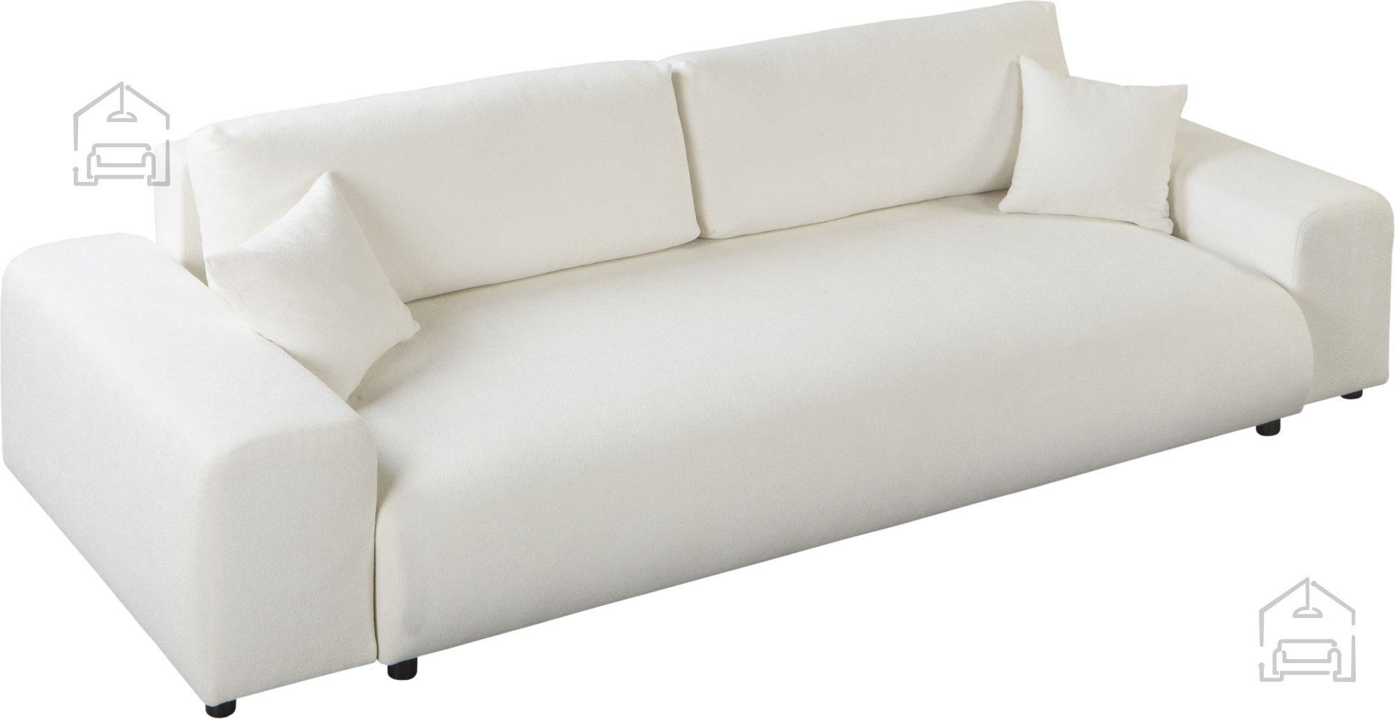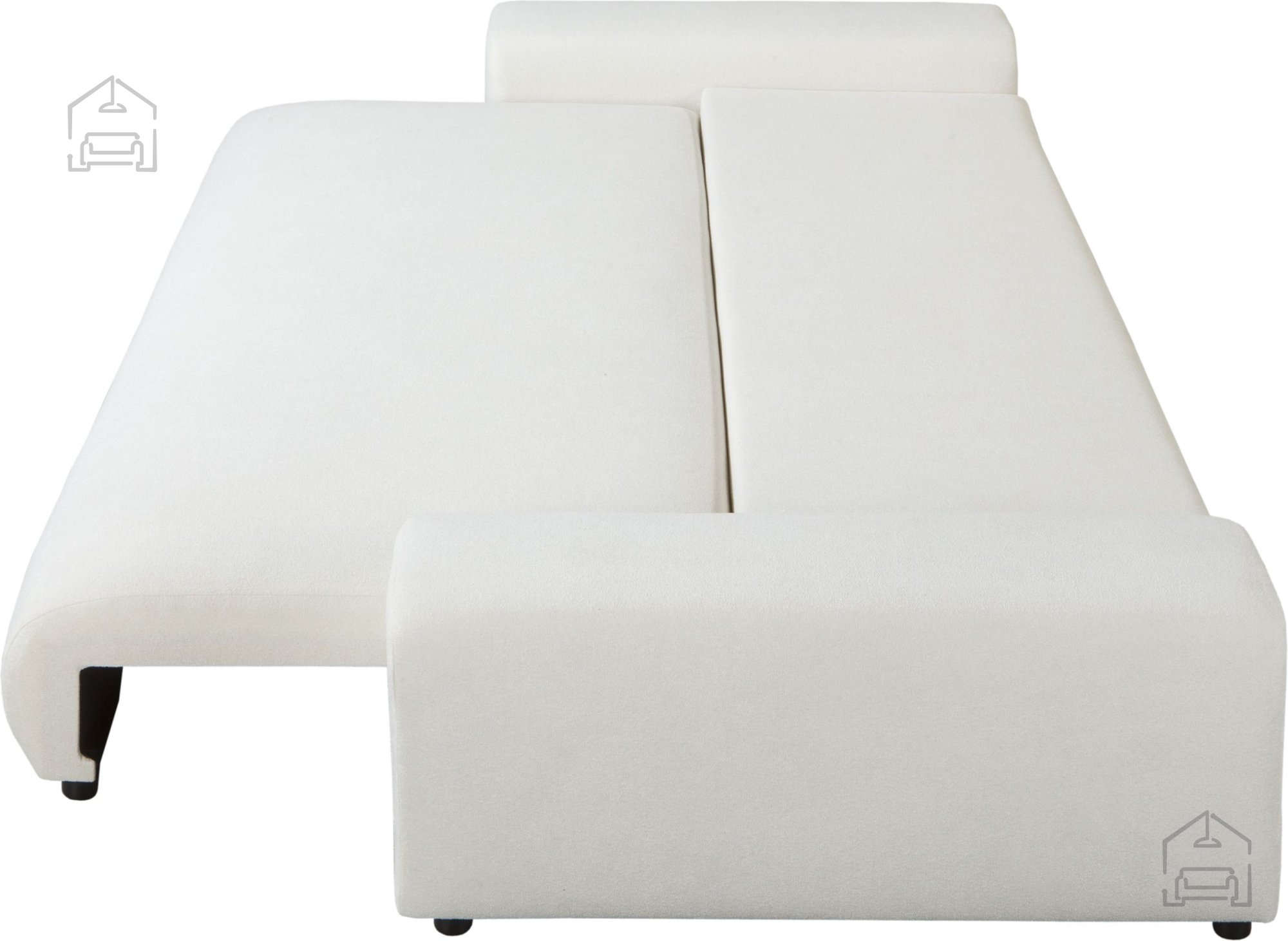 - Möbel werden ganz oder zerlegt transportiert. Bei zerlegtem Transport: Zuerst müssen die Beine an das Sofa geschraubt und anschließend die Armlehnen montiert werden.
