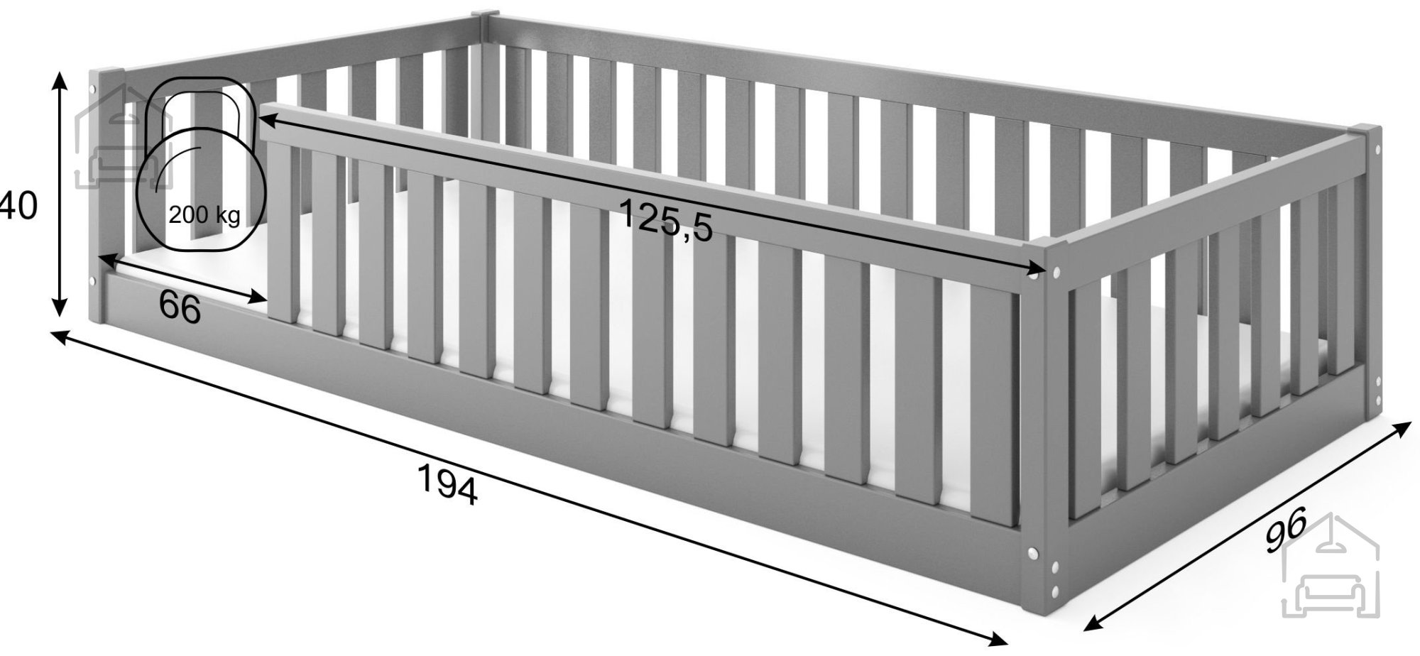 Mit einer Tragkraft von bis zu 200 kg ist das Bett äußerst robust und eignet sich für lebhafte Kinder, die gerne auf dem Bett springen. Eltern können sich auf seine Sicherheit und Stabilität verlassen.