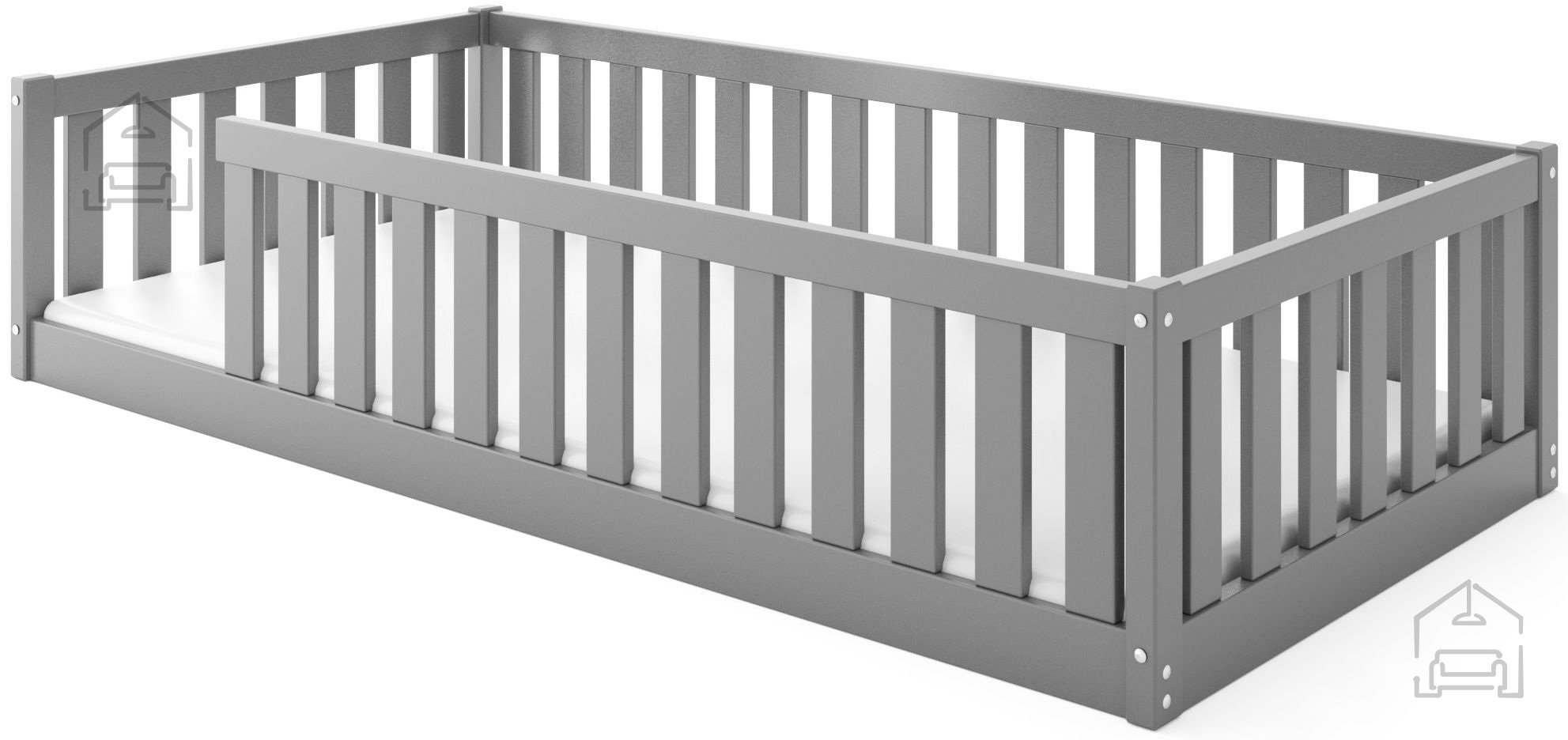 Mit einer Liegefläche von 90x190 cm ist dieses Bett ideal für Kinder, die vom Kinderbett in ein größeres Bett wechseln. Die Maße 96x194x40 cm sind speziell so konzipiert, dass sie Platz sparen und gleichzeitig maximalen Komfort bieten.