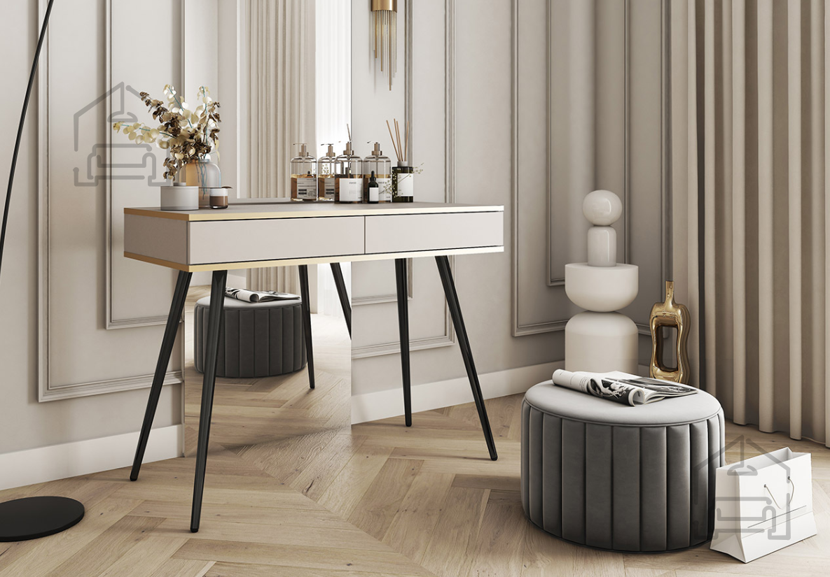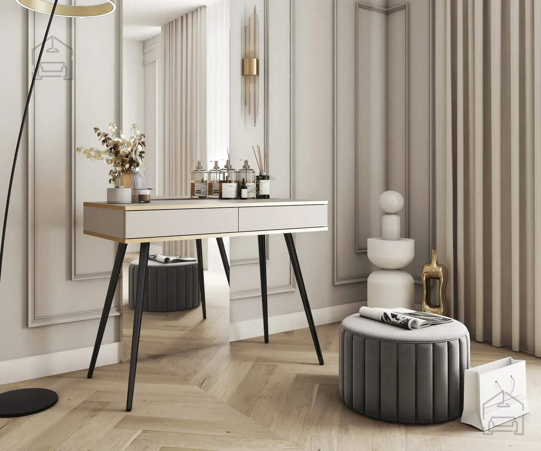 Egal, ob Sie ein Liebhaber minimalistischen Designs sind oder ein funktionales Möbelstück suchen, das Ihr Zuhause bereichert – der Schminktisch Oro ist die perfekte Wahl. Darüber hinaus ist sein modernes Erscheinungsbild und sein praktisches Design eine hervorragende Investition, die Ihre tägliche Routine verbessert und Freude in Ihr Leben bringt.