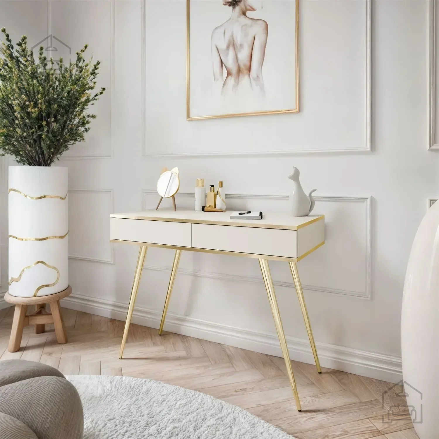 Mit dem Schminktisch Oro erreichen Sie das perfekte Gleichgewicht zwischen Stil und Funktionalität, was Ihrem Zuhause einen unvergleichlichen Wert verleiht. Zögern Sie nicht und wählen Sie die Qualität und Eleganz, die dieser wunderschöne Tisch bietet.