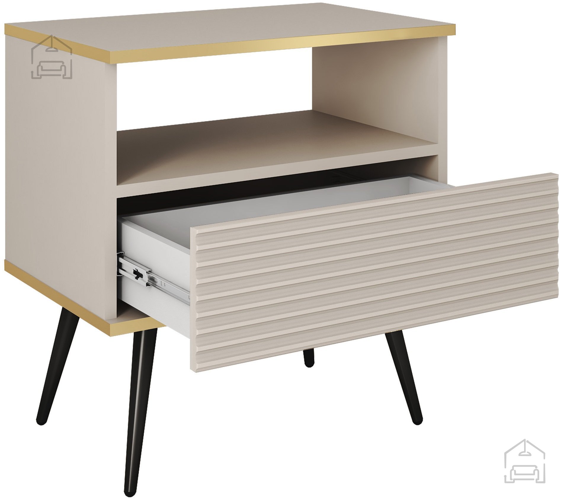 Der Nachttisch Oro ist für alle entworfen, die Ästhetik und Funktionalität schätzen. Mit den Maßen 54x39x59 cm passt er perfekt in Ihren Raum, ohne ihn zu überladen. Seine neutrale beigefarbene Oberfläche ermöglicht eine einfache Kombination mit verschiedenen Möbelstilen, von minimalistisch bis klassisch.