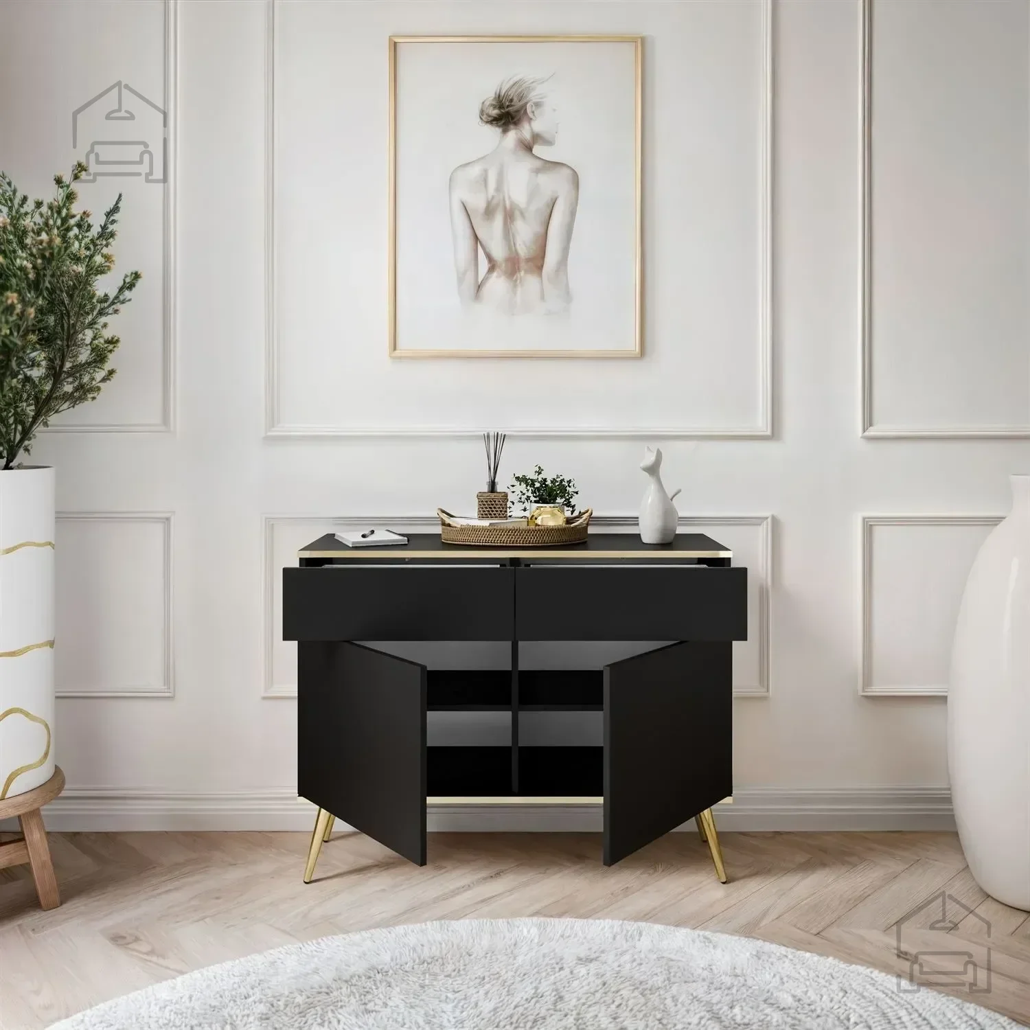 Die Kommode Oro KSZ107 ist nicht nur ein Möbelstück, sondern auch ein Ausdruck von Stil. Ihre schwarze Farbe fügt sich perfekt in jede Inneneinrichtung ein, was eine einfache Kombination mit vorhandenen Möbeln ermöglicht. Hier sind die wichtigsten Vorteile, die diese Kommode zu einer unverzichtbaren Ergänzung für Ihr Zuhause machen: