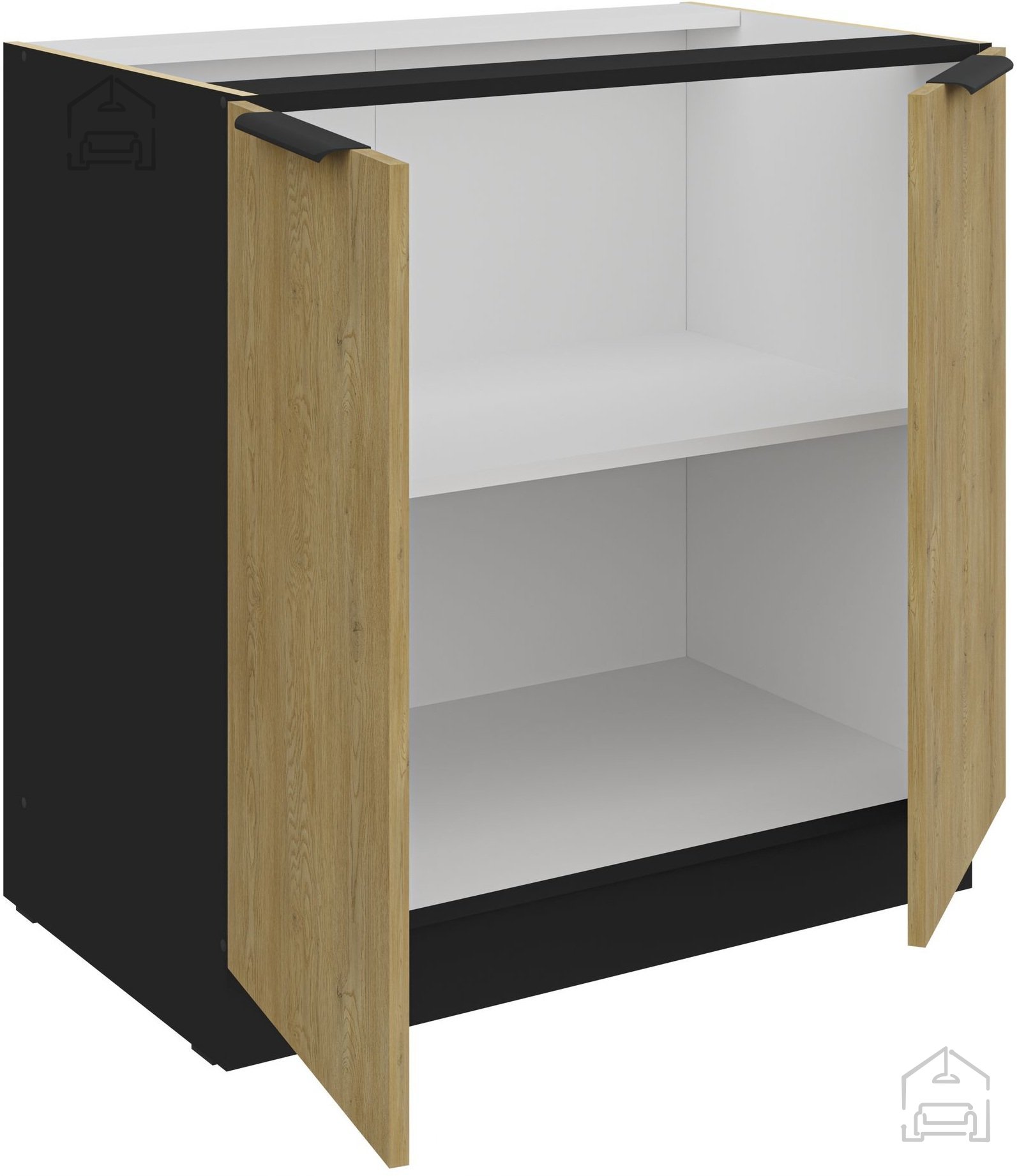 Die Küchenzeile Cremona zeichnet sich durch ein Material aus 16 mm starker laminierter Platte aus, was Haltbarkeit und eine lange Lebensdauer gewährleistet. Die Fronten in der Farbe Cremona-Eiche verleihen einen Hauch von natürlichem Charme, während der Korpus in Schwarz für eine raffinierte und moderne Ästhetik sorgt. Diese Farbkombination bringt ein warmes Gefühl in jedes Zuhause.