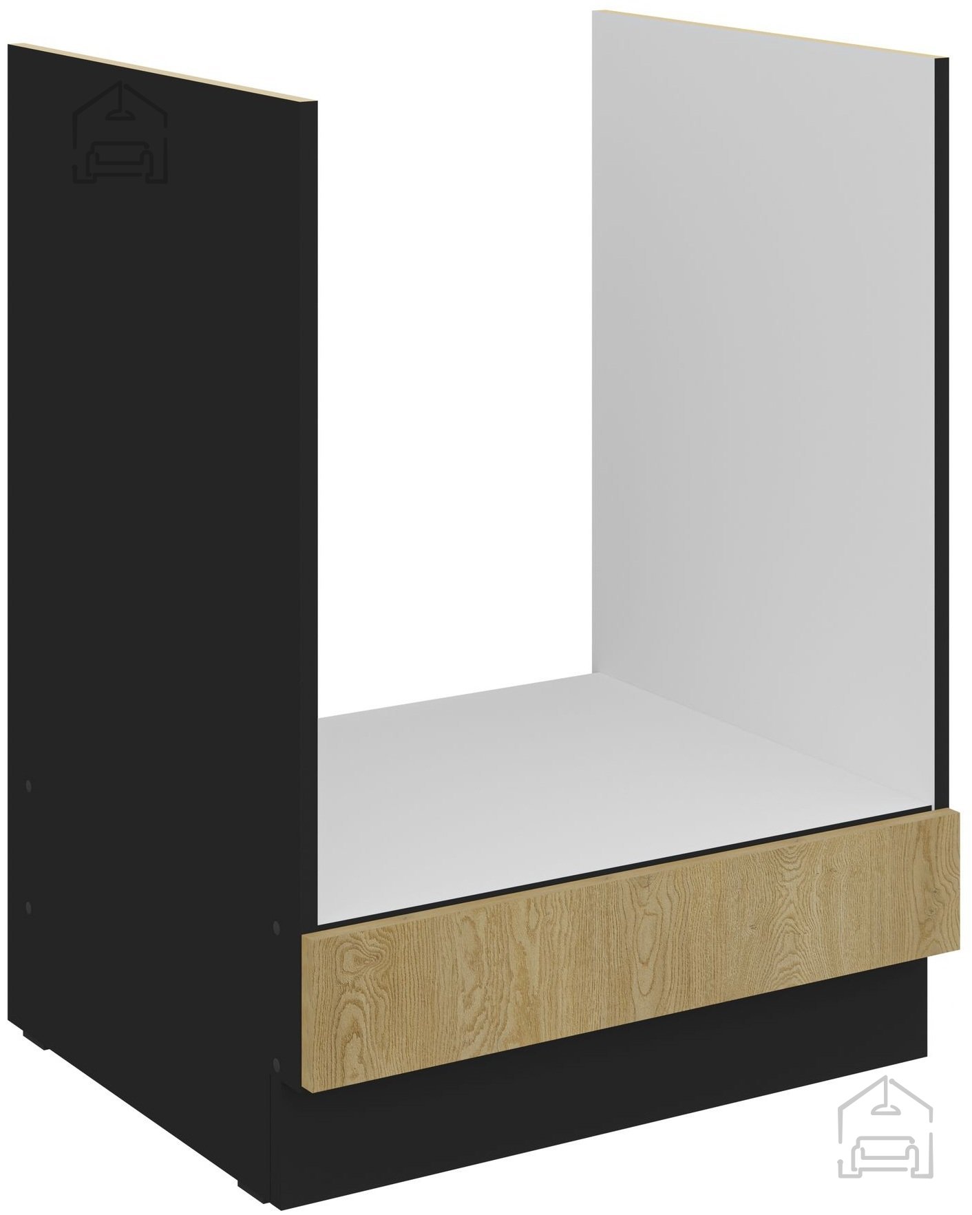 Die Küchenzeile Cremona zeichnet sich durch Material aus 16 mm dicker laminierter Platte aus, was Langlebigkeit und eine lange Lebensdauer gewährleistet. Fronten in der Farbe Cremona-Eiche verleihen einen Hauch von natürlichem Charme, während der Korpus in Schwarz für eine raffinierte und moderne Ästhetik sorgt. Diese Farbkombination bringt ein warmes Gefühl in jedes Zuhause.