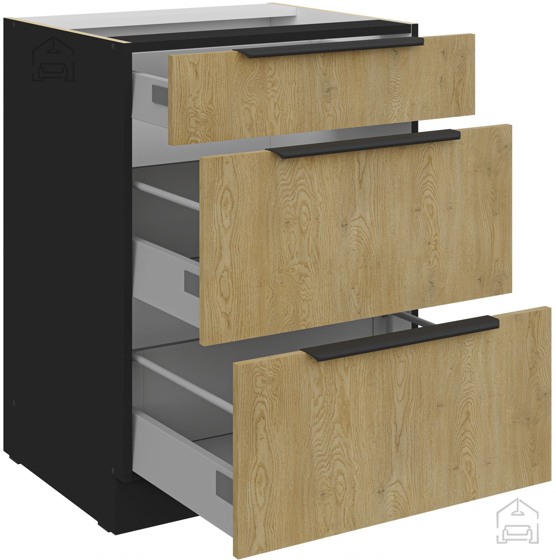Die Küchenzeile Cremona zeichnet sich durch Material aus laminierten Platten mit einer Stärke von 16 mm aus, was Haltbarkeit und eine lange Lebensdauer gewährleistet. Die Fronten in der Farbe Cremona-Eiche verleihen einen Hauch von natürlichem Charme, während der Korpus in Schwarz für eine raffinierte und moderne Ästhetik sorgt. Diese Farbkombination bringt ein warmes Gefühl in jedes Zuhause.