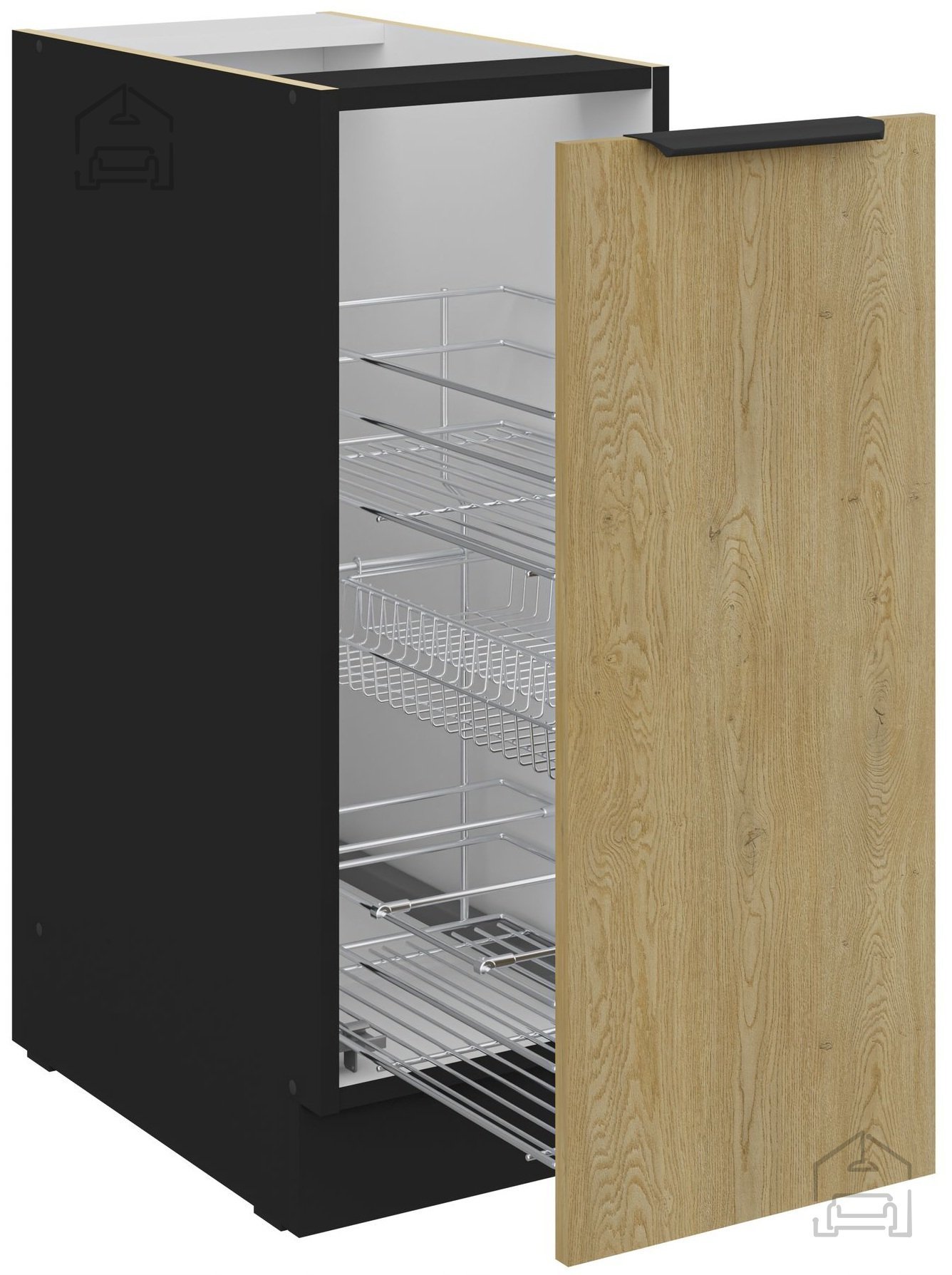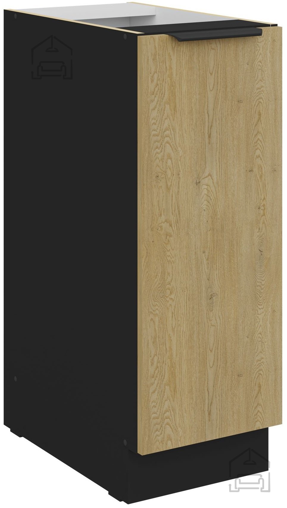Die Küchenzeile Cremona zeichnet sich durch Material aus 16 mm starker laminierter Platte aus, was Langlebigkeit und eine lange Lebensdauer gewährleistet. Die Fronten in der Farbe Cremona-Eiche verleihen einen Hauch natürlichen Charmes, während der schwarze Korpus für eine raffinierte und moderne Ästhetik sorgt. Diese Farbkombination bringt ein warmes Gefühl in jedes Zuhause.
