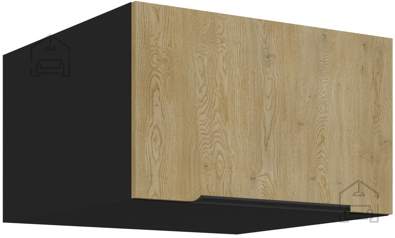 Die Küchenzusammenstellung Cremona zeichnet sich durch Material aus 16 mm starker laminierten Platte aus, was Langlebigkeit und eine lange Lebensdauer gewährleistet. Die Fronten in der Farbe Cremona-Eiche verleihen einen Hauch von natürlichem Charme, während der Korpus in Schwarz für eine raffinierte und moderne Ästhetik sorgt. Diese Farbkombination bringt ein warmes Gefühl in jedes Zuhause.