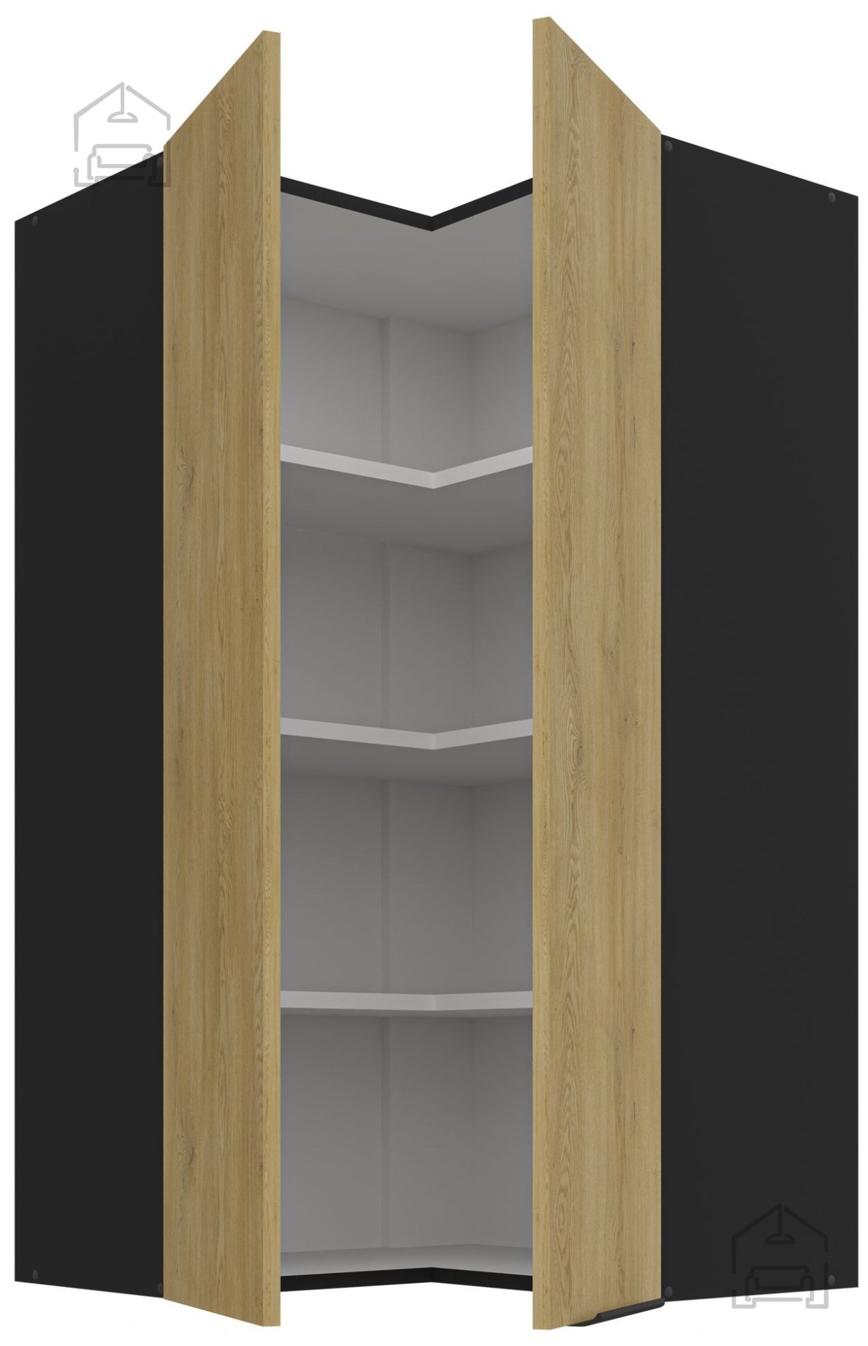 Die Küchenzeile Cremona zeichnet sich durch Material aus 16 mm dicker laminierter Platte aus, was Langlebigkeit und eine lange Lebensdauer gewährleistet. Die Fronten in der Farbe Cremona Eiche verleihen einen Hauch von natürlichem Charme, während der Korpus in Schwarz für eine raffinierte und moderne Ästhetik sorgt. Diese Farbkombination bringt ein warmes Gefühl in jedes Zuhause.