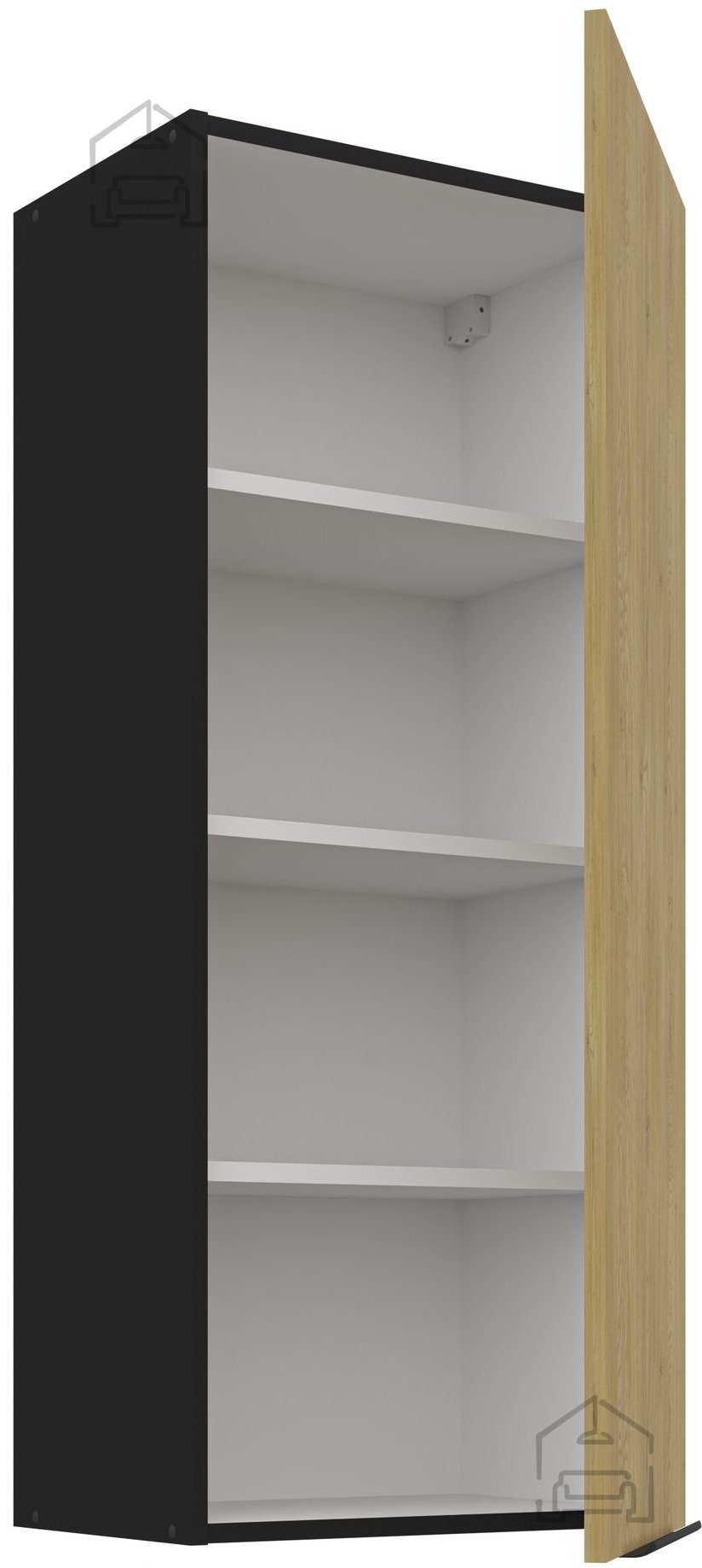 Die Küchenzeile Cremona zeichnet sich durch Material aus 16 mm starker laminierter Platte aus, was Haltbarkeit und eine lange Lebensdauer gewährleistet. Die Fronten in der Farbe Cremona Eiche verleihen einen Hauch von natürlichem Charme, während der schwarze Korpus für eine raffinierte und moderne Ästhetik sorgt. Diese Farbkombination bringt ein warmes Gefühl in jedes Zuhause.